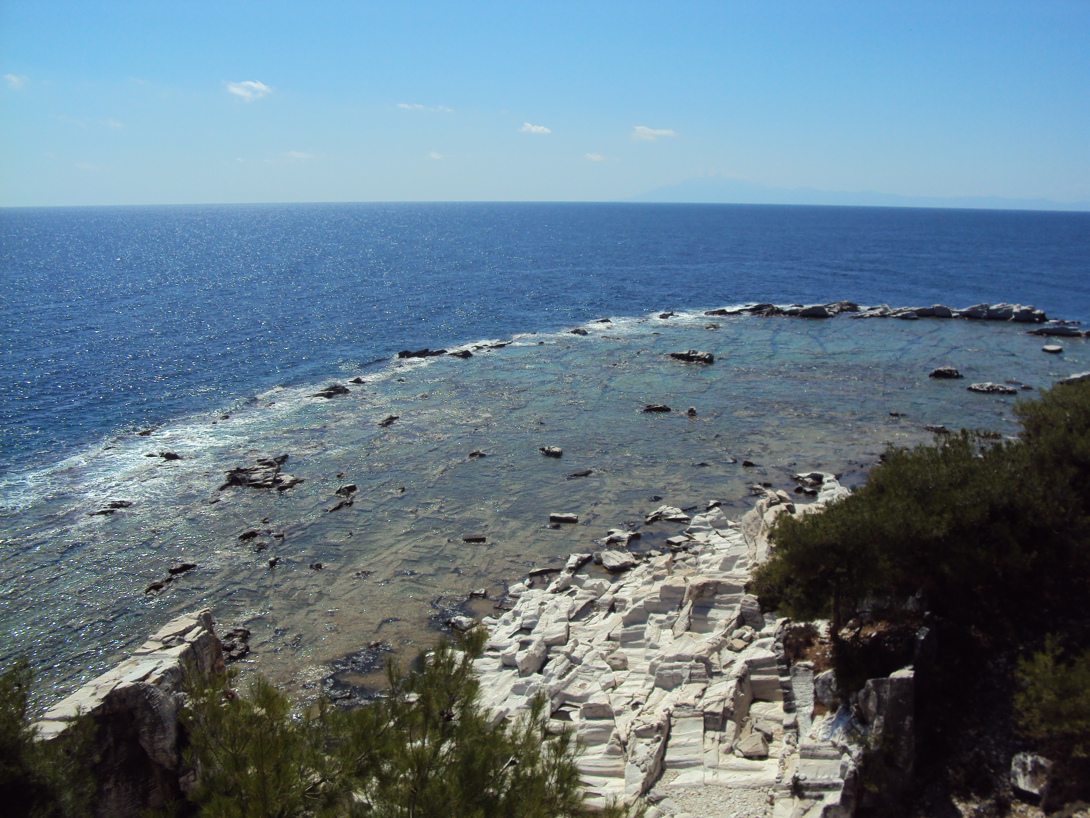 Este o plaja spectaculoasa datorita nisipului alb si apei foarte albastre care iti lasa impresia ca te afli intr-un loc exotic. Drumul pana acolo este forestier, ca majoritatea drumurilor din Thassos, dar merita pentru ca  peisajul de la Marble Beach nu il mai intalnesti in alta parte.