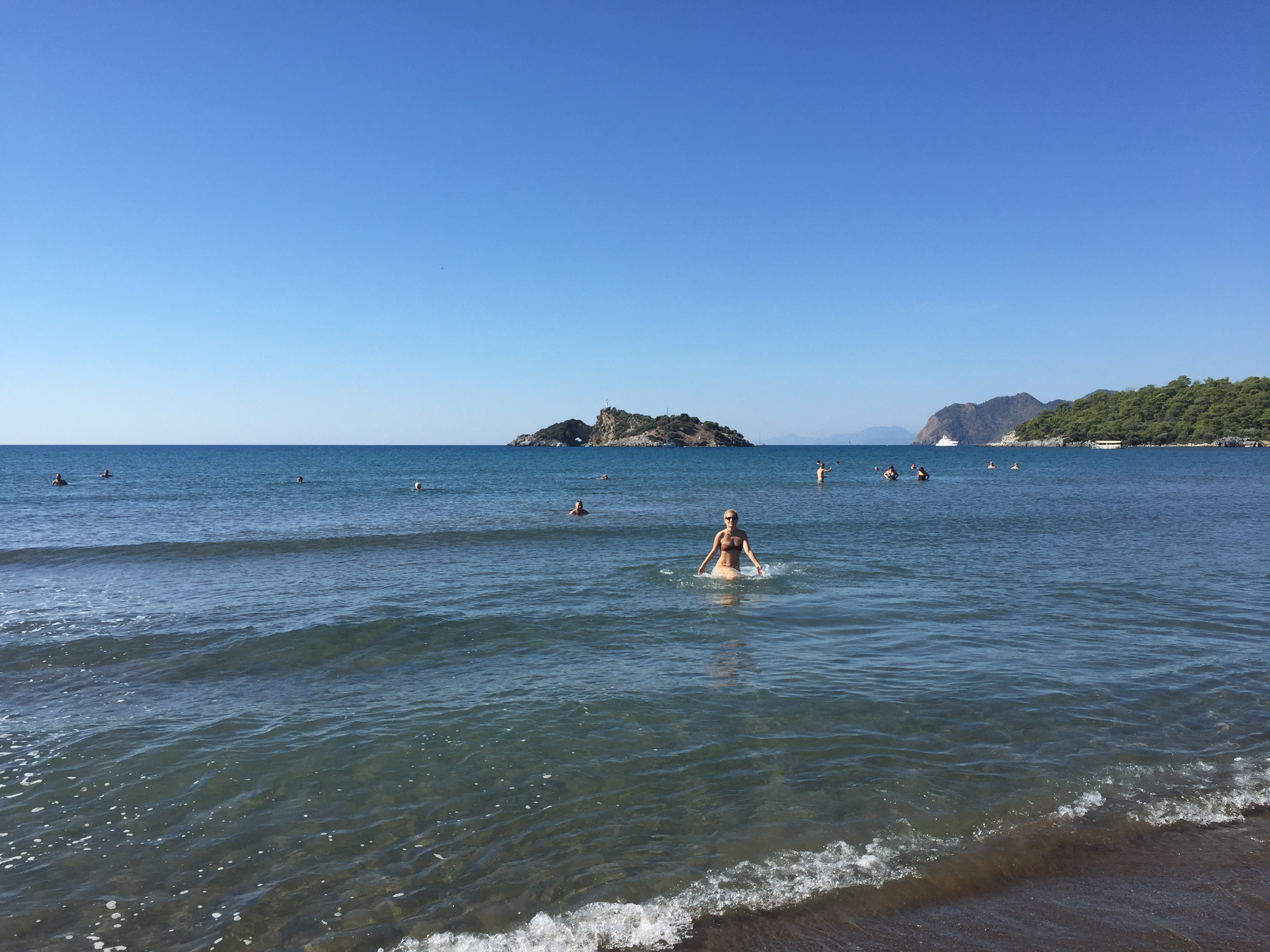 plaja formata la varsarea raului Dalyan in Marea Mediterana, una dintre cele mai frumoase plaje din Turcia unde isi depun ouale broastele uriase Caretta Caretta