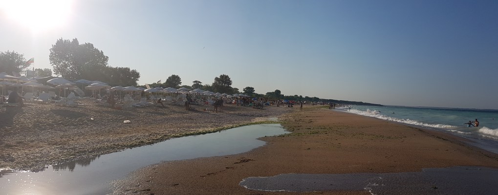 plaja amenajata la Krapets cu sezlonguri si umbrele