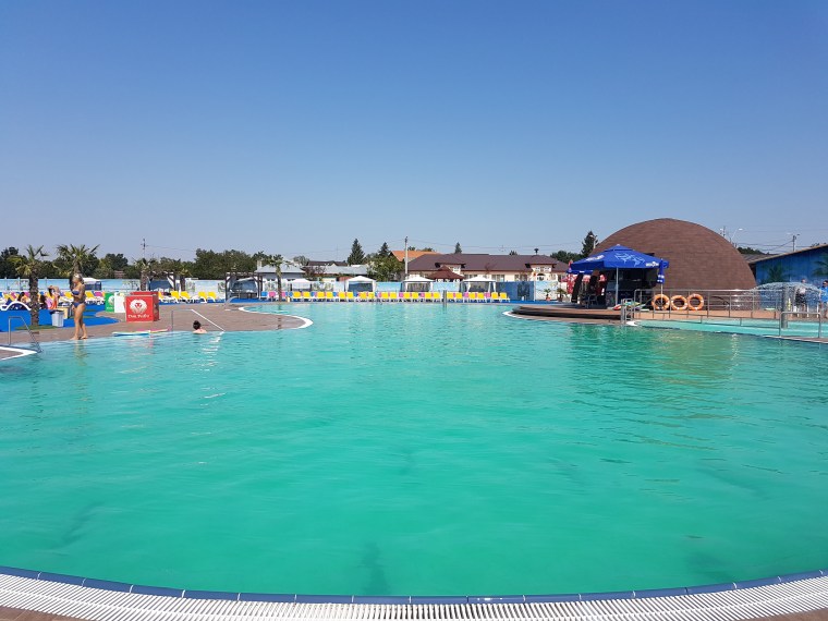 Dacă în anii trecuți apa avea culoarea albatră, anul acesta este de o culoare verde smarald, este extrem de curată, ceea ce înseamnă că se investește în soluții de curățare, care nu miros a clor și nu lasă pielea uscată dupa ce ieși din piscină, un lucru foarte important.