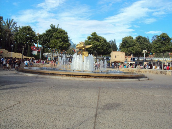 La intrarea in PortAventura te intampina ciocanitoarea Woody, mascota acestui parc.
