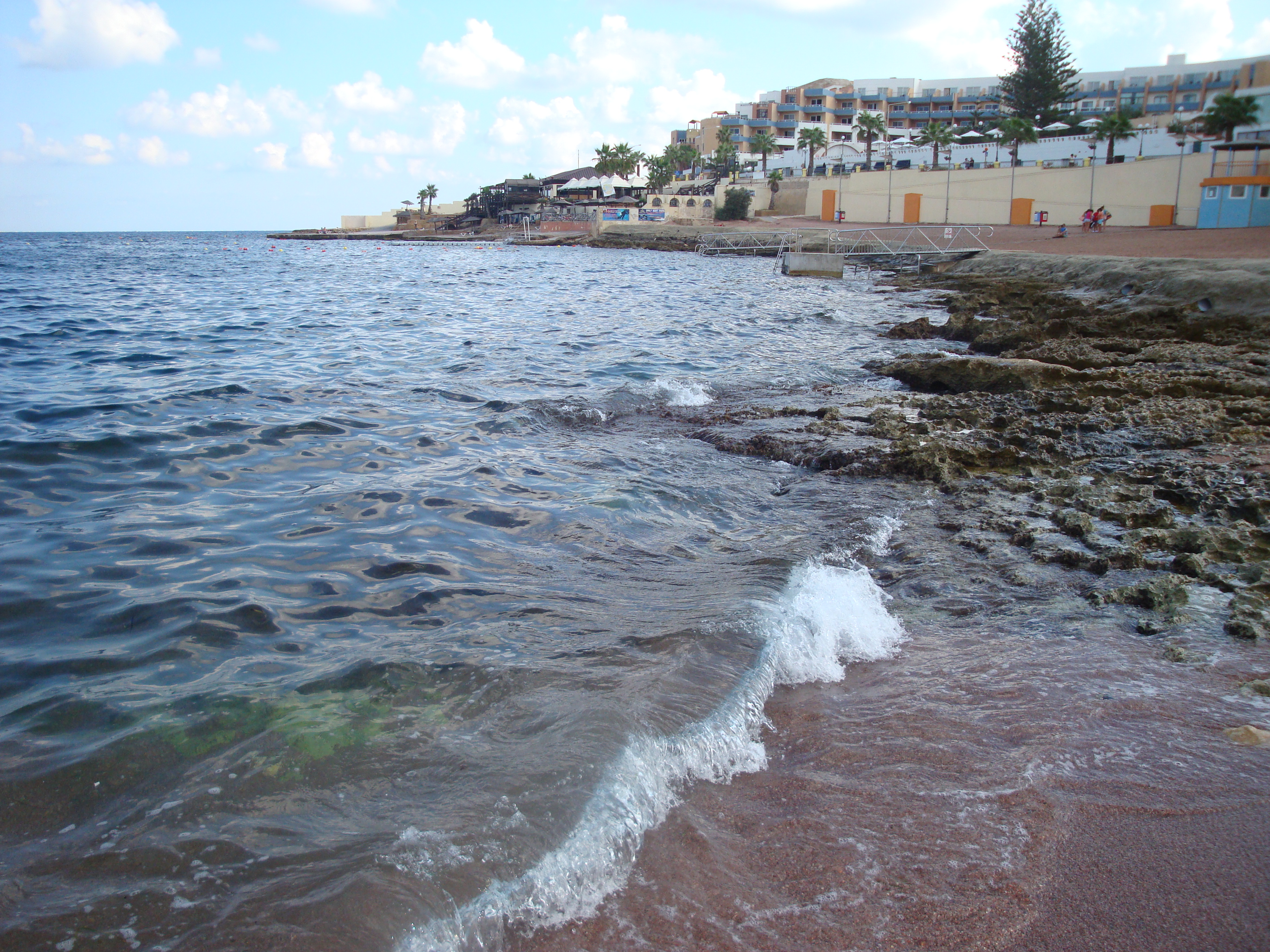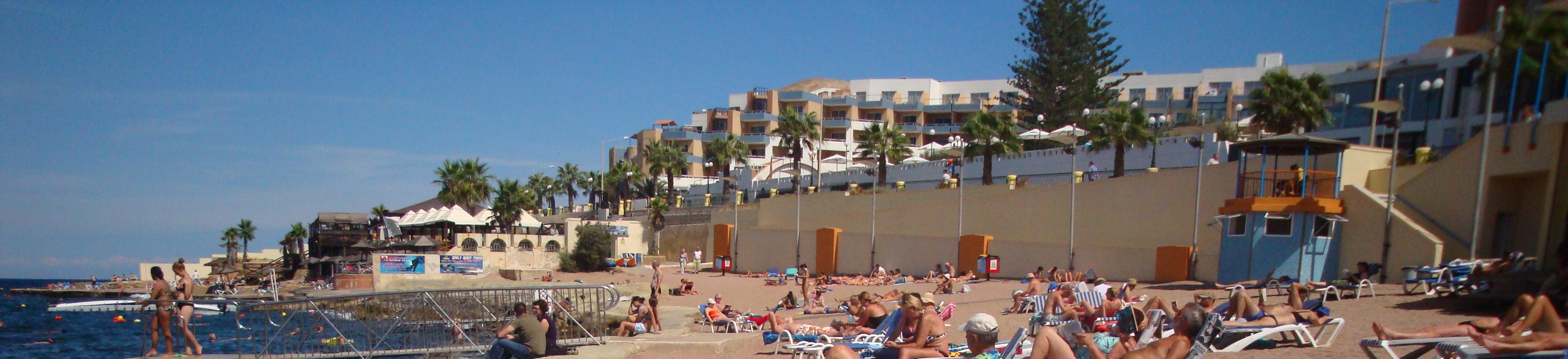 Plaja este mare, întinsă, cu intrarea în mare lină, apa se adâncește progresiv, ceea ce o face ideală pentru familiile care au copii mici. E minunat să înoți în timp ce privești orașul Mellieha și te bucuri de apă cristalină.