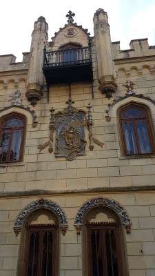 blazonul familiei Sturdza pe fatada castelui de la Miclauseni (1)