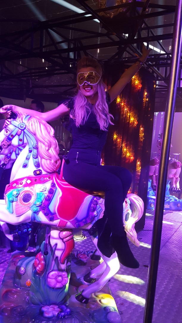 Când am fost cu participanții de la #ExperienceBucharest era Carnaval Party, încă de la intrare erai introdus în atmosfera de sărbătoare de animatorii costumați ca la cele mai mari circuri din lume. Nu lipseau vata pe baț roz, pentru că viața este întoteauna roz atunci când te distrezi, popcornul și bineînțeles un imens carusel care era atracția clubului.