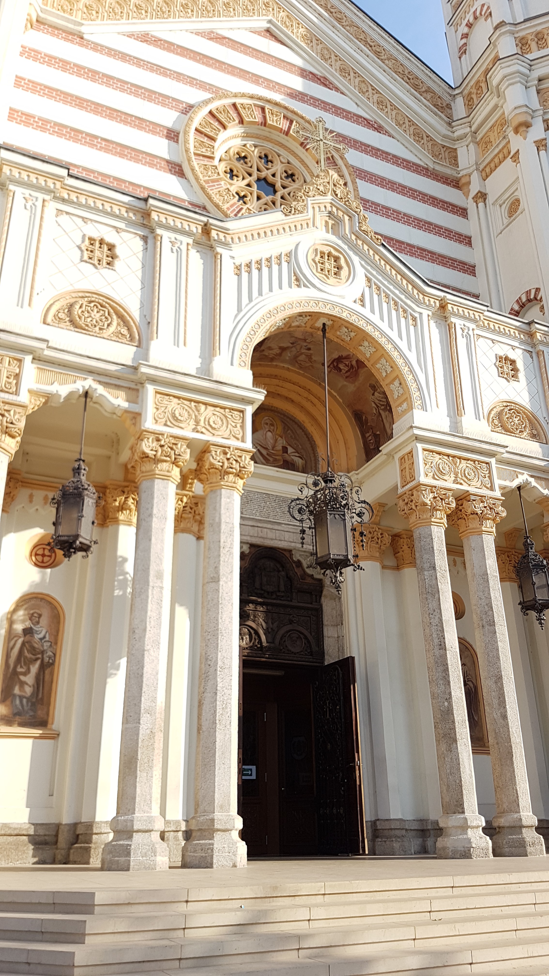 Construită într-un stil gotic cu elemente de artă moldovenească, este pur și simplu impresionantă încă de la intrare. Dacă exteriorul te uimește, interiorul te copleșește de-a dreptul. Arcadele, cupolele, balcoanele și picturile te fac să te simți ca în Bazilica Sfântu Petru din Roma în miniatură.