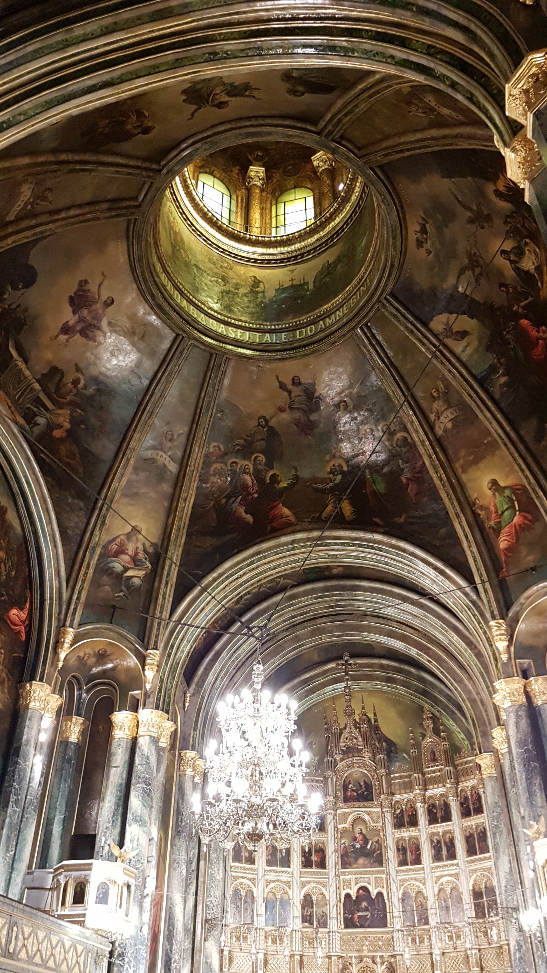 Pictura cu influențe renascentiste a fost făcută de Gheorghe Tattarescu, iar coloanele de marmură, vitraliile cu scene biblice și sfinți au fost executate la Viena.