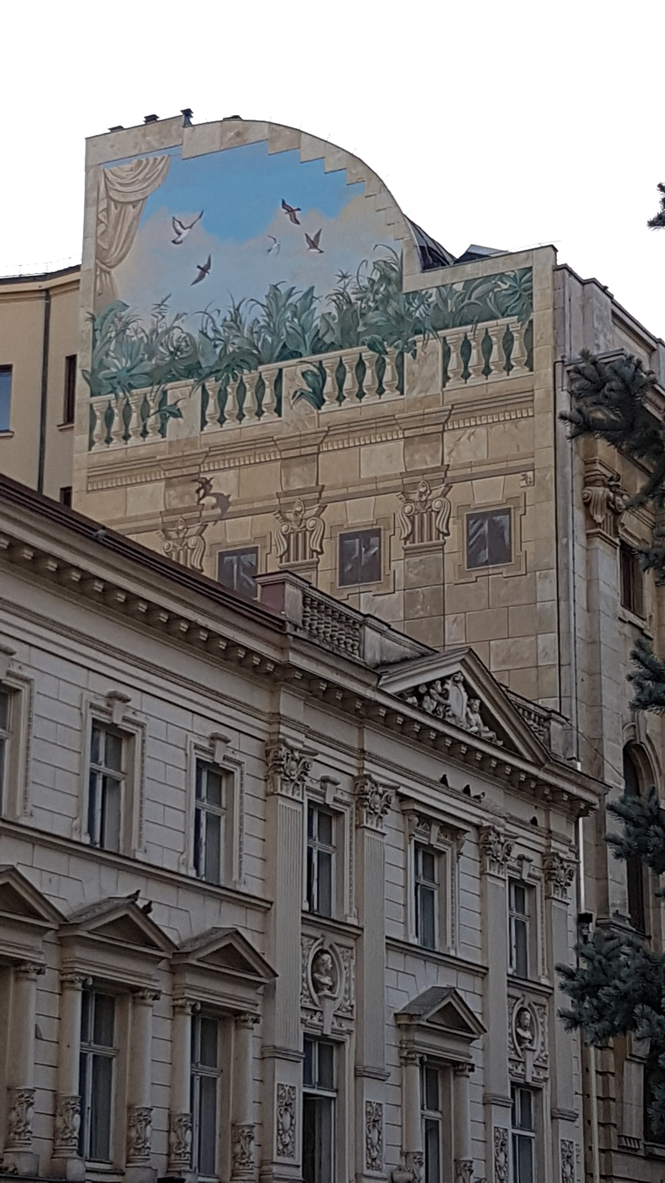 Clădirile Art Nouveau nu se află doar pe Calea Victoriei, acestea putând fi găsite și pe Bulevardul Dacia sau chiar în zona Parcului Carol. Marius, ghidul nostru de la Good Living Bucharest ne-a povestit că acoperișul de la intrare în formă de scoică este un elemente specific arhitecturii Art Nouveau. Acesta îl regăsim la casele oamenilor înstăriți din acea perioadă, scoica simbolizând prosperitatea.