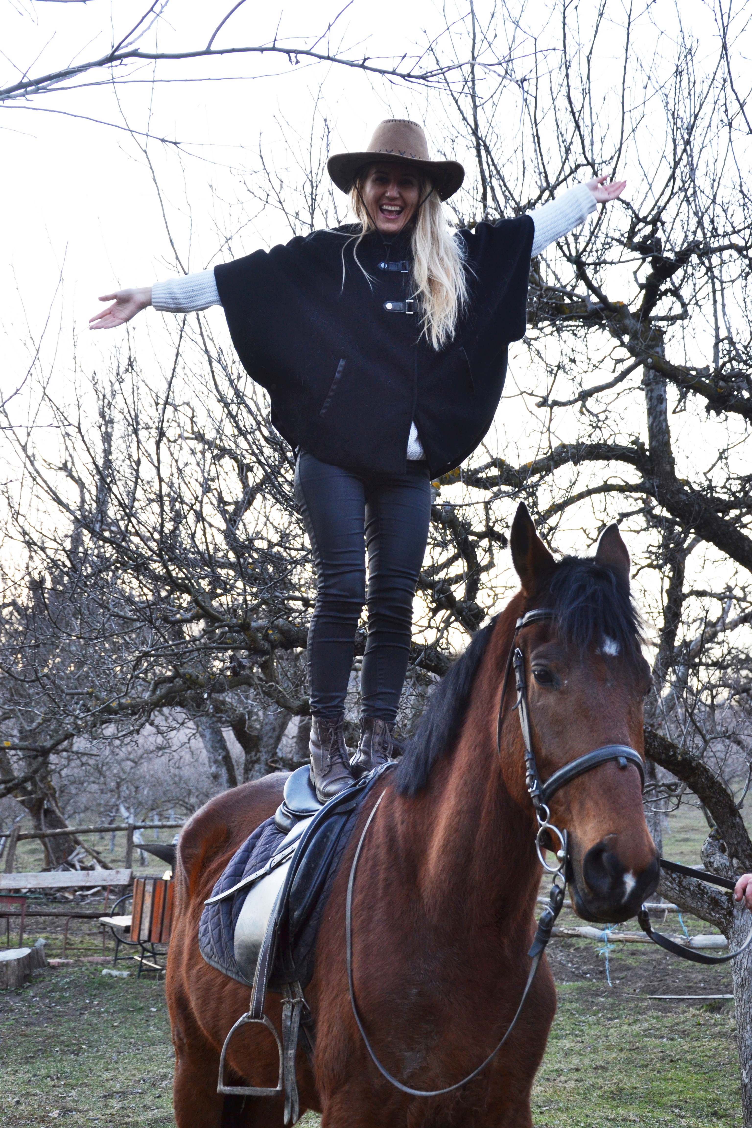 După plimbarea călare de 3 ore prin aerul curat de munte, ni se făcuse foame așa că ne-am bucurat când ne-am întors la centrul de echitație și grătarele sfârâiau. Până când masa a fost gata, am făcut o ședință foto cu caii, iar cele mai curajoase dintre noi și-au ținut echilibrul în picioare pe cal.