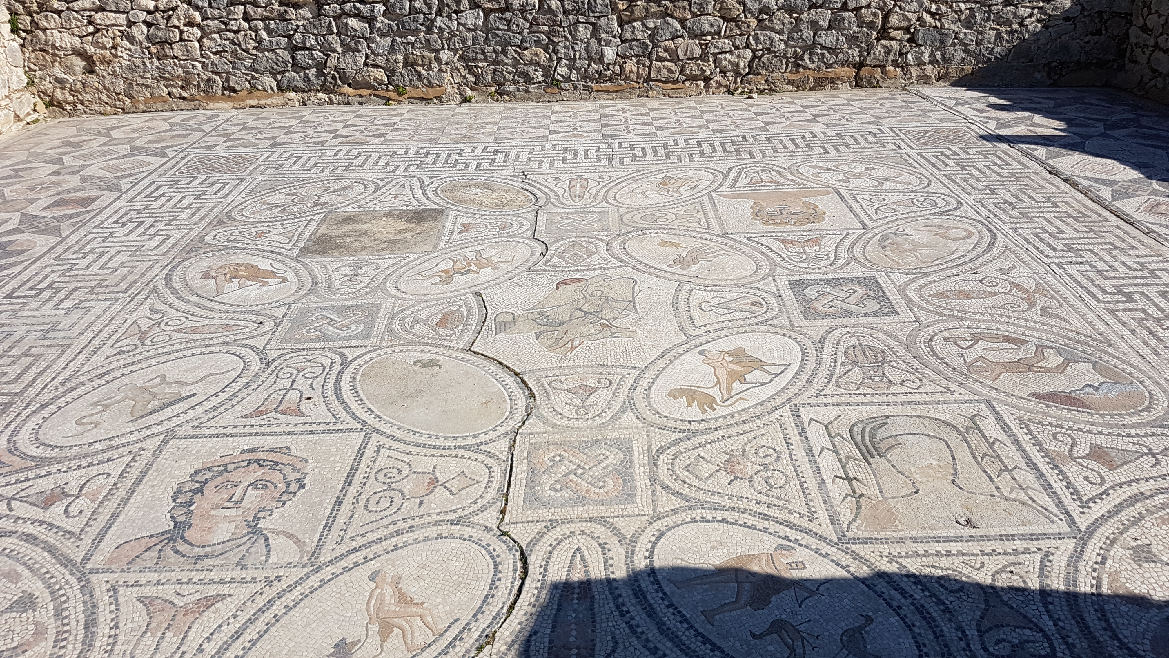 Într-unul dintre mozaicuri se poate observa și svastica care este datată înainte de a fi folosită de către naziști. Se pare că originea acestui simbol este în India unde reprezintă prosperitate și abundență.
