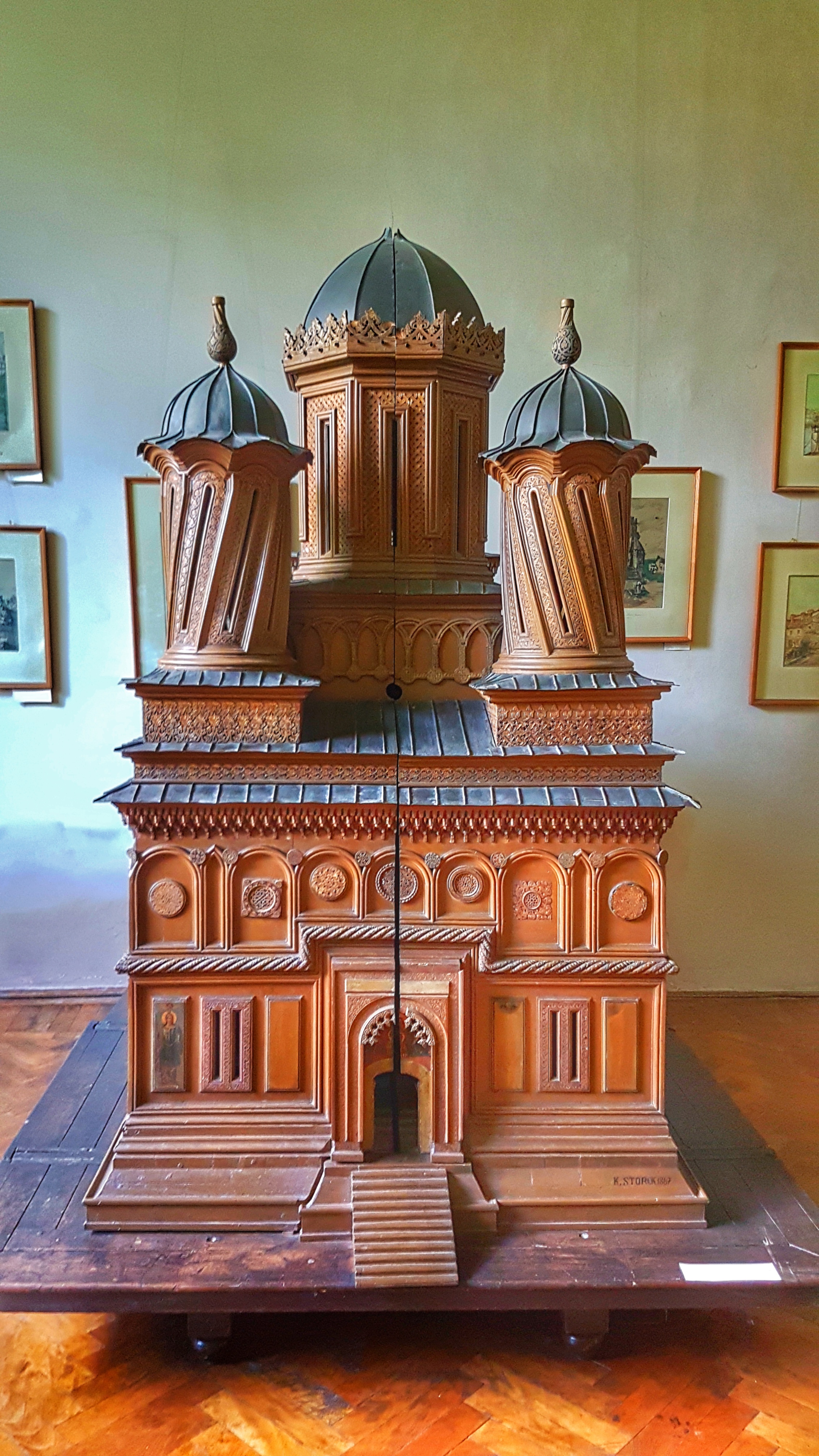 Impresionantă este macheta bisericii mânăstirii Curtea de Argeș, care se deschide.