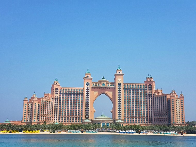 - Palm Jumeirah, Insula Palmier – insula artificială care privită de sus are forma de palmier, unde se află și emblematicul hotel Atlantis.