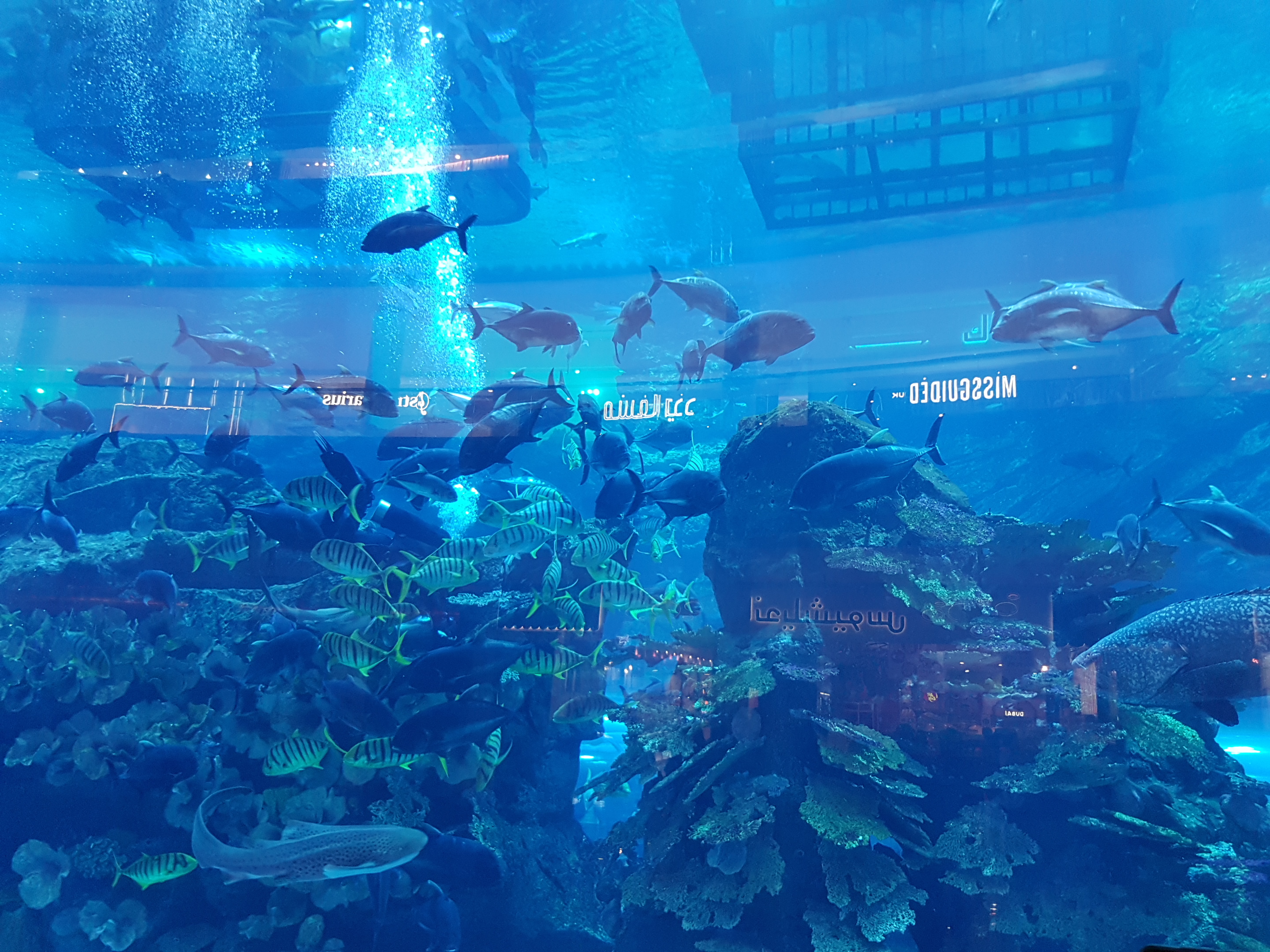Chiar dacă nu ești un fan al shoppingului trebuie să faci o vizita la Dubai Mall, vei fi impresionat. Mall-ul are cel mai mare magazin de bomboane din lume, un patinoar, 22 de cinematografe și 120 de restaurante și cafenele, precum și unul dintre cele mai mari acvarii din lume. Acvariul are peste 33.000 de specii de animale, printre care și 400 de rechini.