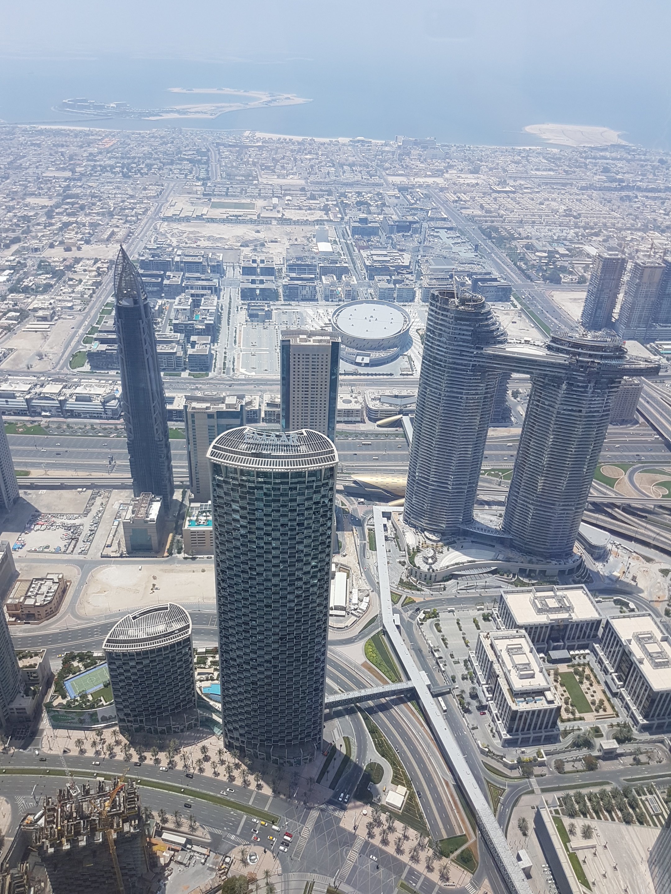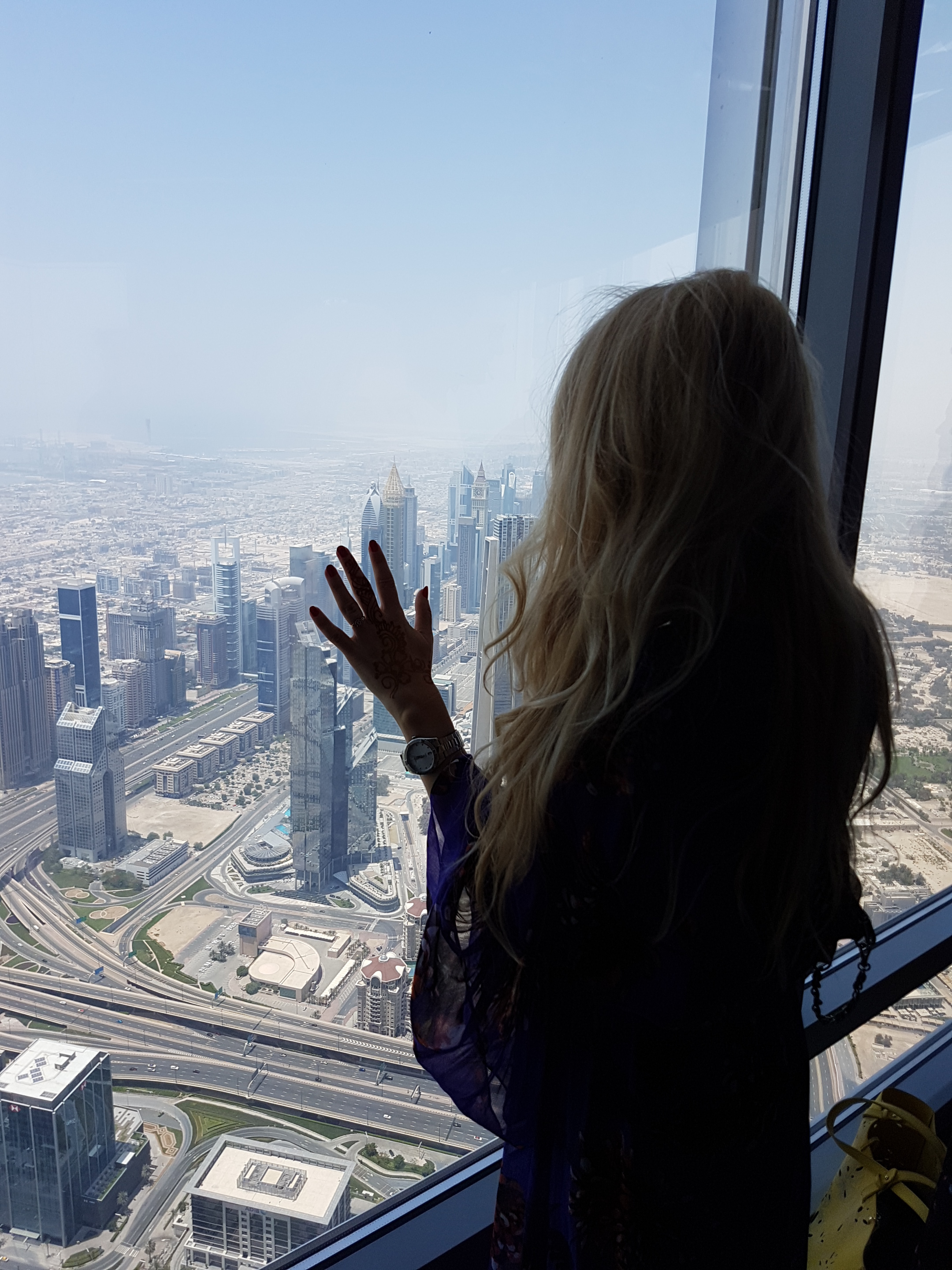 Urcarea in Burj Kalifa se face prin Dubai Mall si dureaza 1 minut până când ajungi la etajul 124 al clădirii. De aici ai o privire 360 de grade asupra Dubaiului și îți poți face poze de la înălțime cu cele mai emblematice clădiri.
