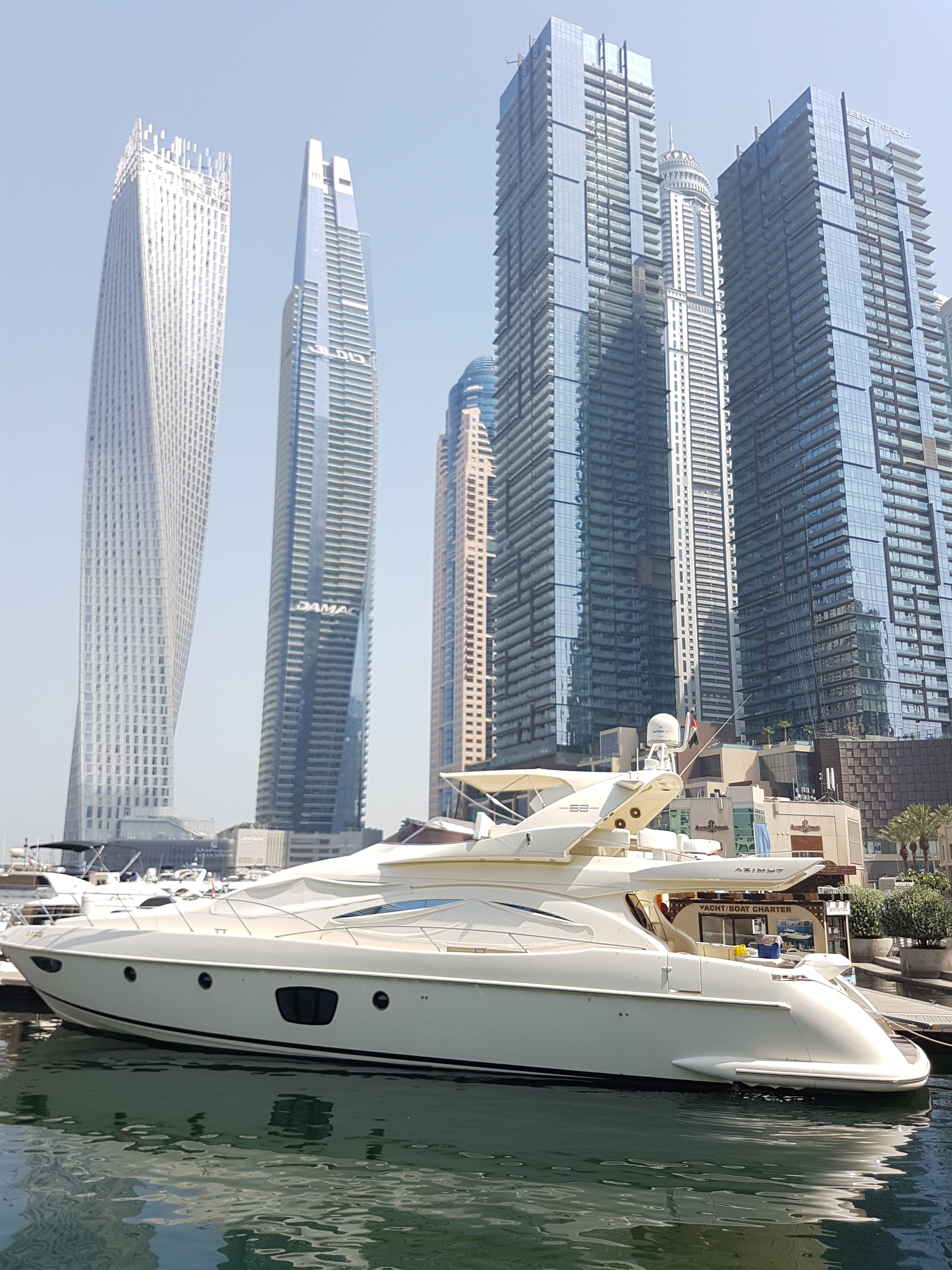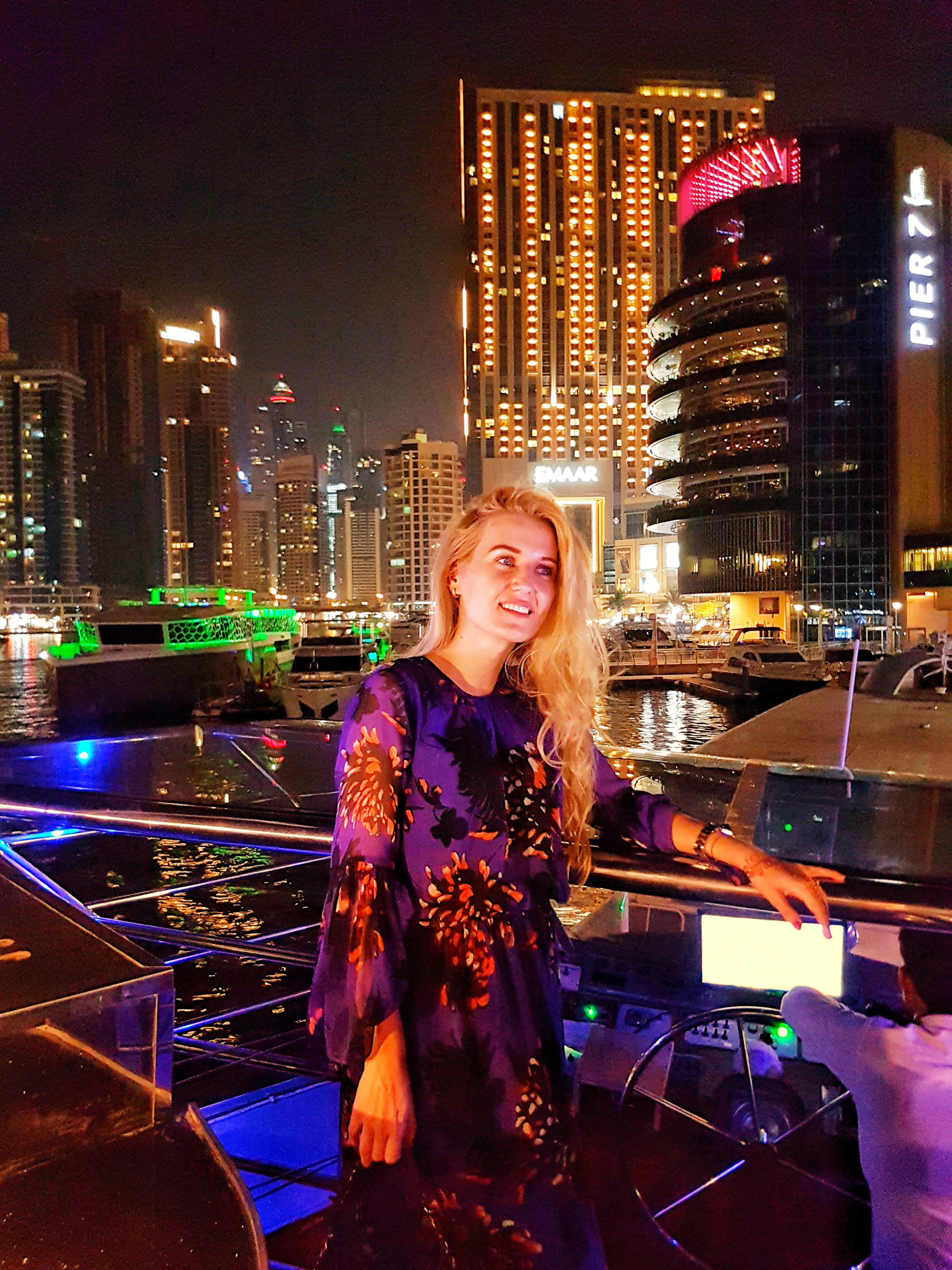 Dubai Marina este cel mai luxos port din Dubai și se află într-o zonă plină de zgârie nori. E o zonă în care e frumos să te plimbi și ziua, dar cel mai frumos e să faci o croazieră seara. În timpul croazierei poți admira cele mai emblematice clădiri din Dubai, te poți bucura de muzică și de atmosfera în sine.