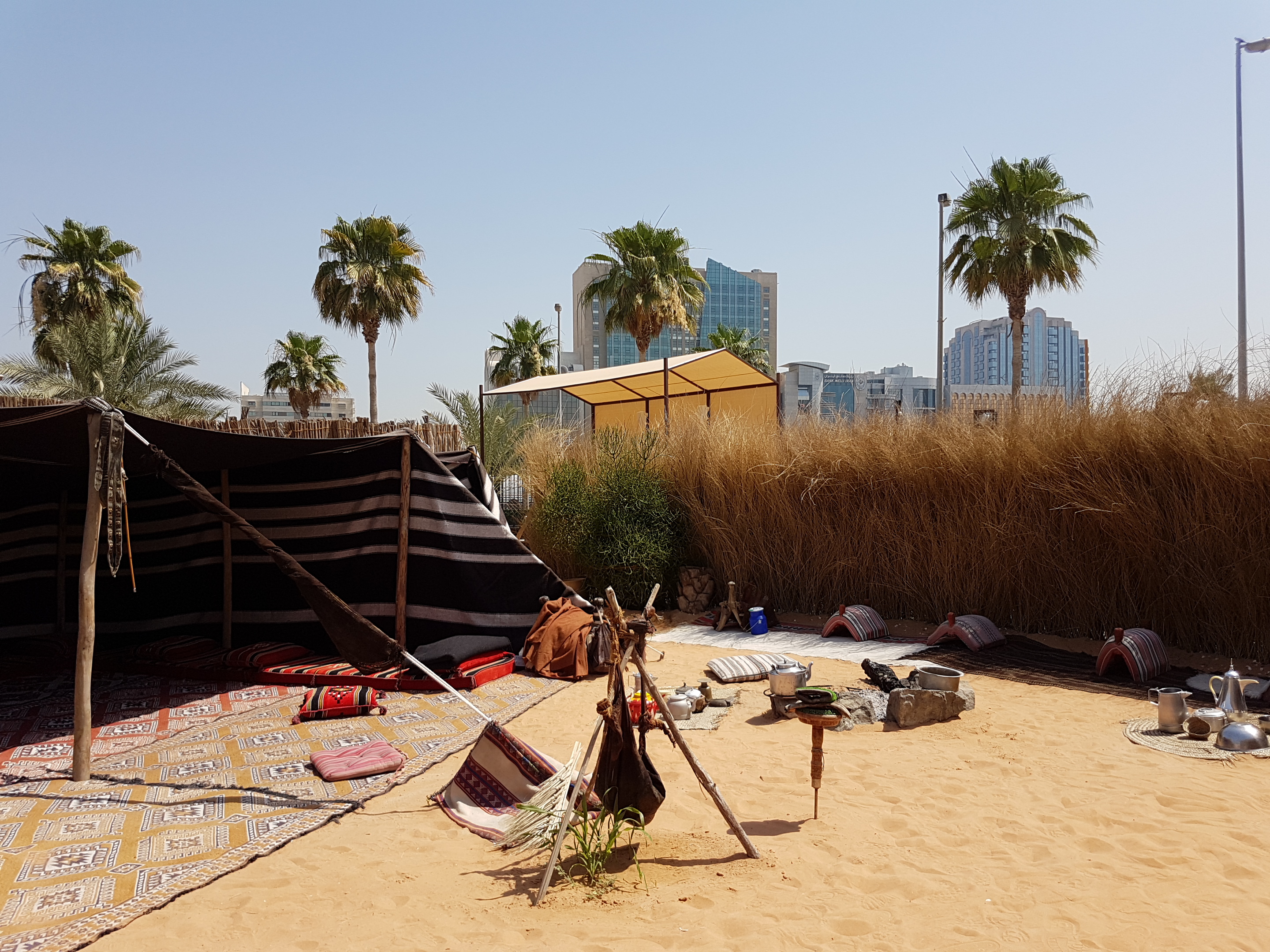 Totul este amenajat ca într-un caravanserai, locul unde bedunii se opreau să se odihnească atunci când călătoreau distanțe foarte mari pentru a face comerț. Până când este servită cina, te poți plimba pe cămilă, poți face poze cu șoimul sau îmbrăcat în portul lor tradițional – abaya se numește cel femeiesc și kandura, cel bărbătesc. Să exprimentezi mai bine modul de viață al arbailor, îți poți face chiar și un tatuaj cu hena.