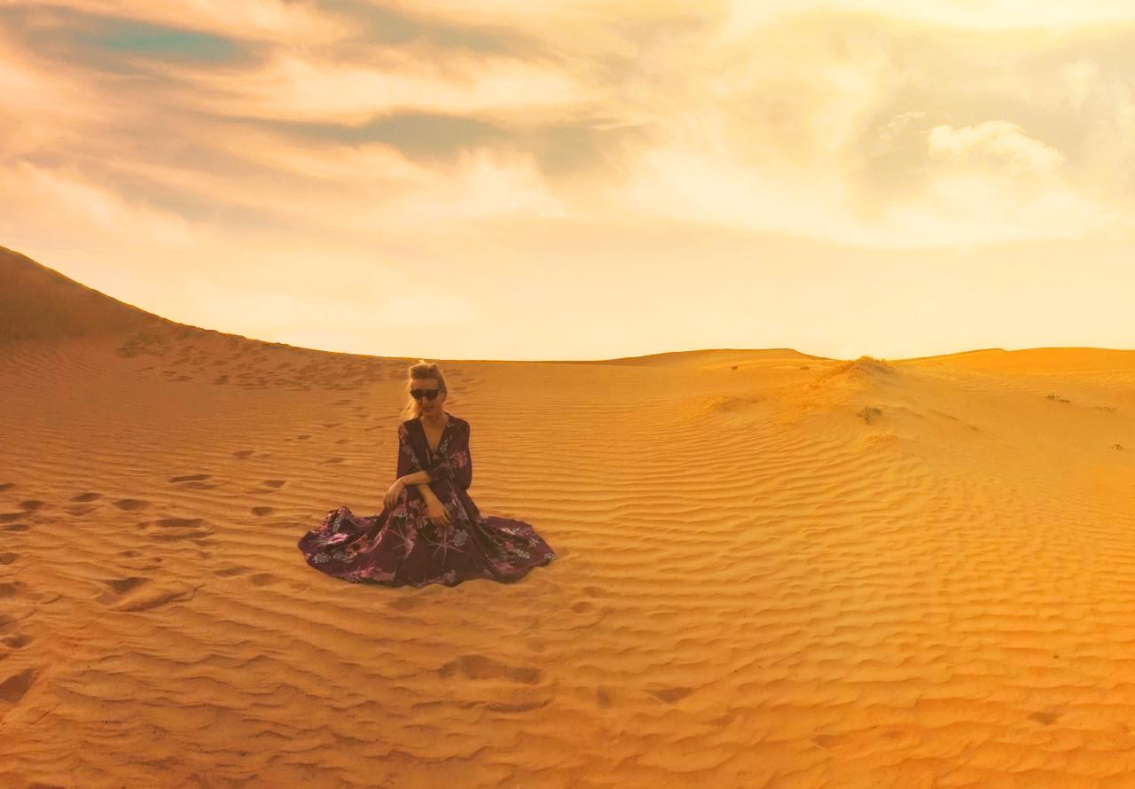 Când ajung în deșert mașinile se opresc să le desumfle roțile pentru o mai bună aderență pe nisip. Te uiți stânga – dreapta, față – spate și tot ce e vezi e o întindere de nisip auriu, roșiatic. Te simți ca pe o altă planetă și ești gata de aventură.