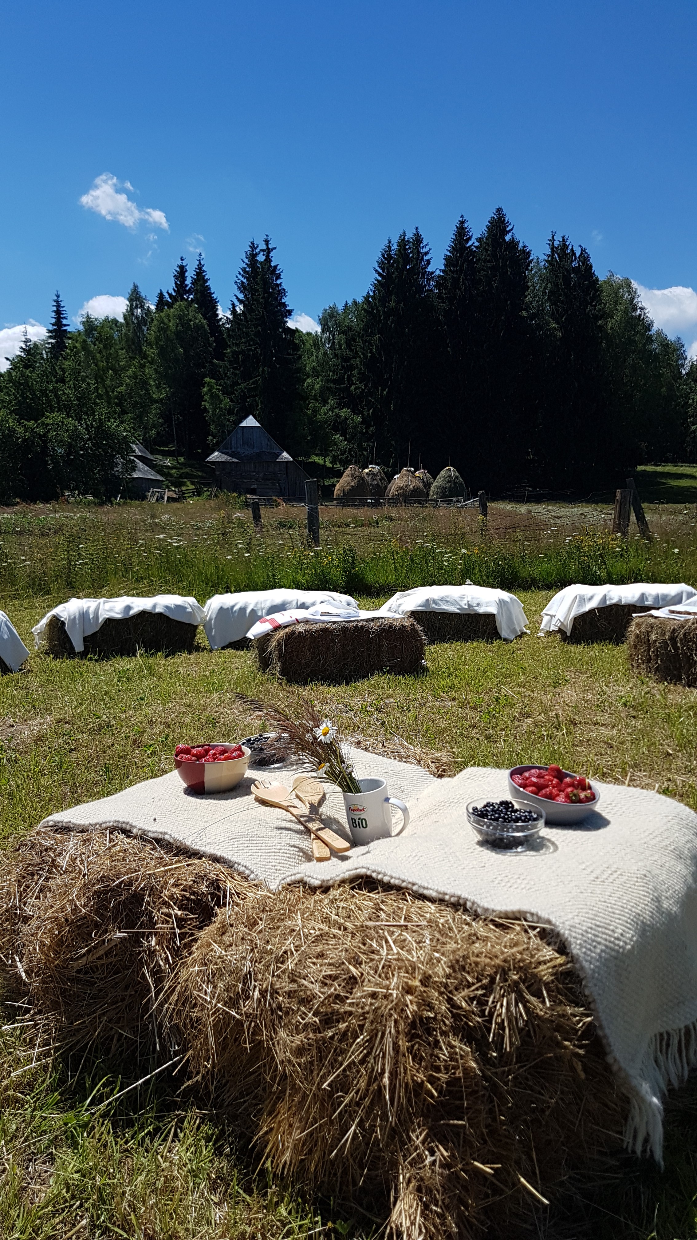 Familia Matiș care deține ferma ne-a aștepat cu super bunătăți bio gătite în casă, chiar dacă sunt vegetariană nu pot să nu recunosc că șunca, jumările și cârnați miroseau demențial de bine. Eu m-am delecata cu afine și căpșune proaspete care sunt infint mai bune decât cele cumpărate de la piață.