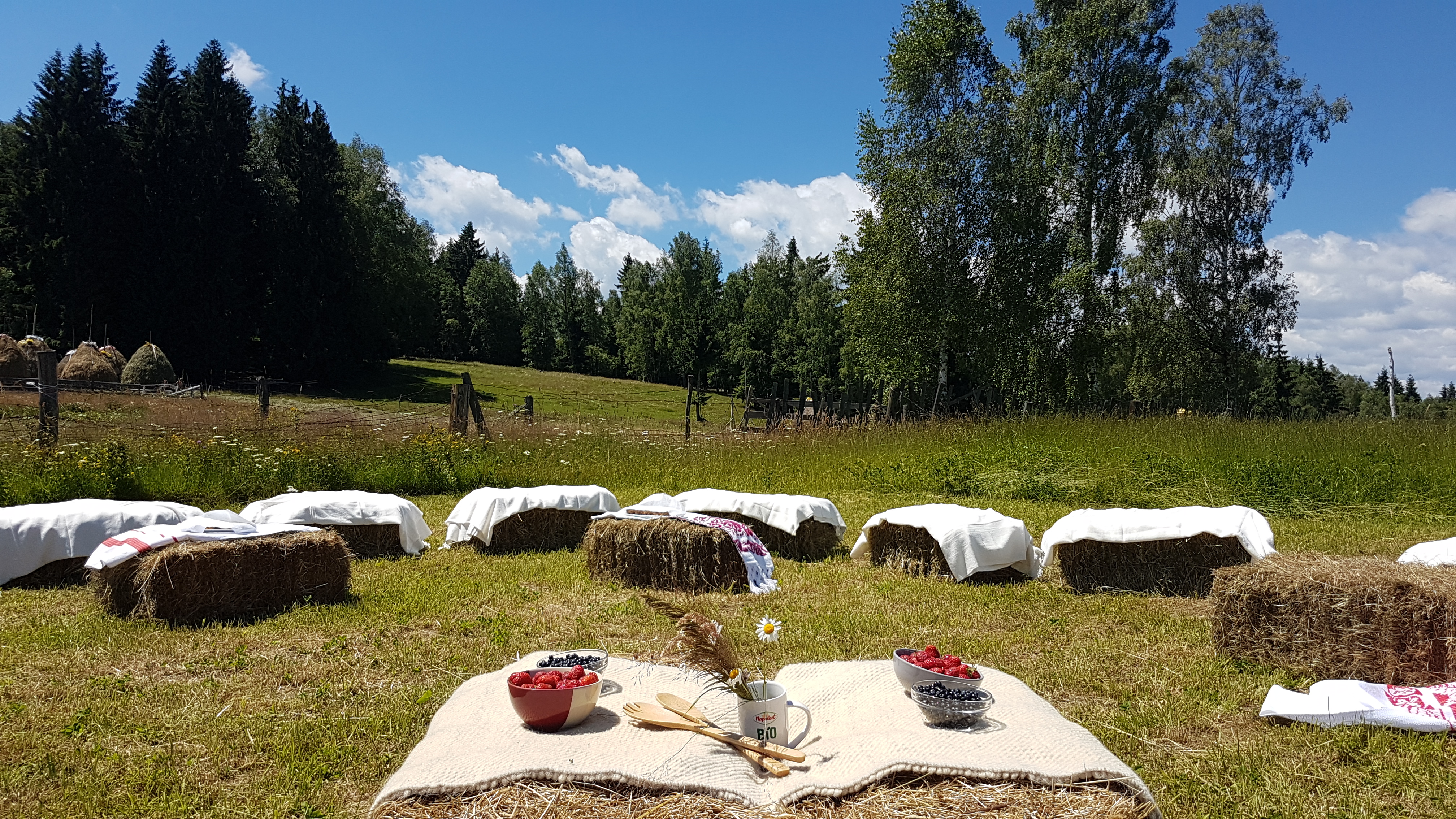 Am făcut o masa câmpenească pe baloții de paie, printre căpițele de fân și florile de câmp, acompaniați de greierii care cântau cri-cri în surdină. În asemenea momente realizezi că adevărata viață este în natură, înconjurat de oameni veseli și pozitivi.