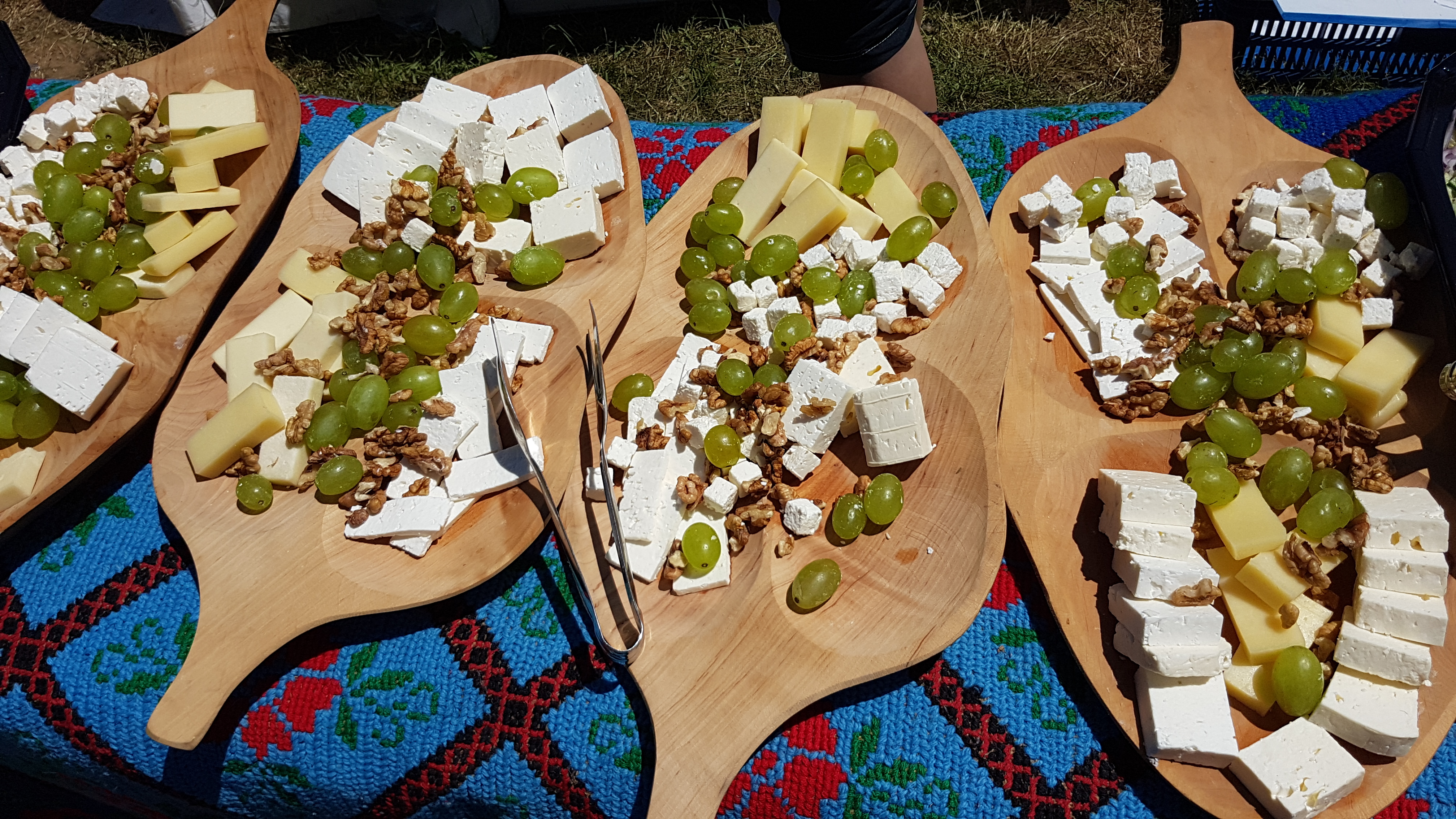 Aerul curat de munte mi-a făcut poftă de mâncare, așa că am putut să mănânc pe lângă varietatea de brânzeturi și desert, un cheesecake delicious și niște scovergi cu brânză sărată senzaționale. Pentru ca experiența să fie bio în întregime, am mâncat din farfurii comestibile, din tărâțe.