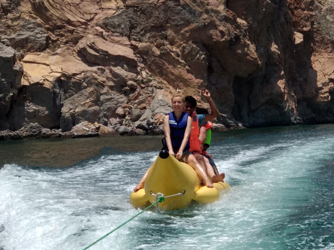 Mi-a plăcut atât de mult încât aș mai repeta experiența, iar momentul răsturnării nu este atât de rău pentru că ai vesta de salvare și în câteva secunde ești la suprafață. Deci, plimbarea cu banana este și pentru cei care nu știu să înoate, având în permanență vesta de salvare.