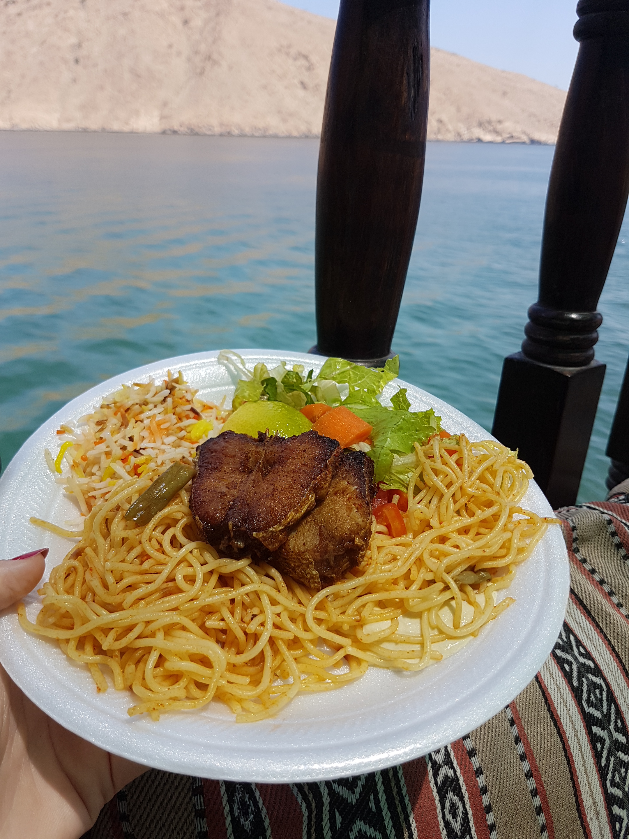 Ne-am oprit să și pescuim cu o undiță rudimentară doar din gută si cârlig, dar peștii nu s-au arătat. Unii au venit, au mâncat momeala și au plecat, nelăsându-se prinși. Chiar dacă nu am văzut delfini și nu am prins pești, croaziera în Oman a fost o experiența memorabilă.