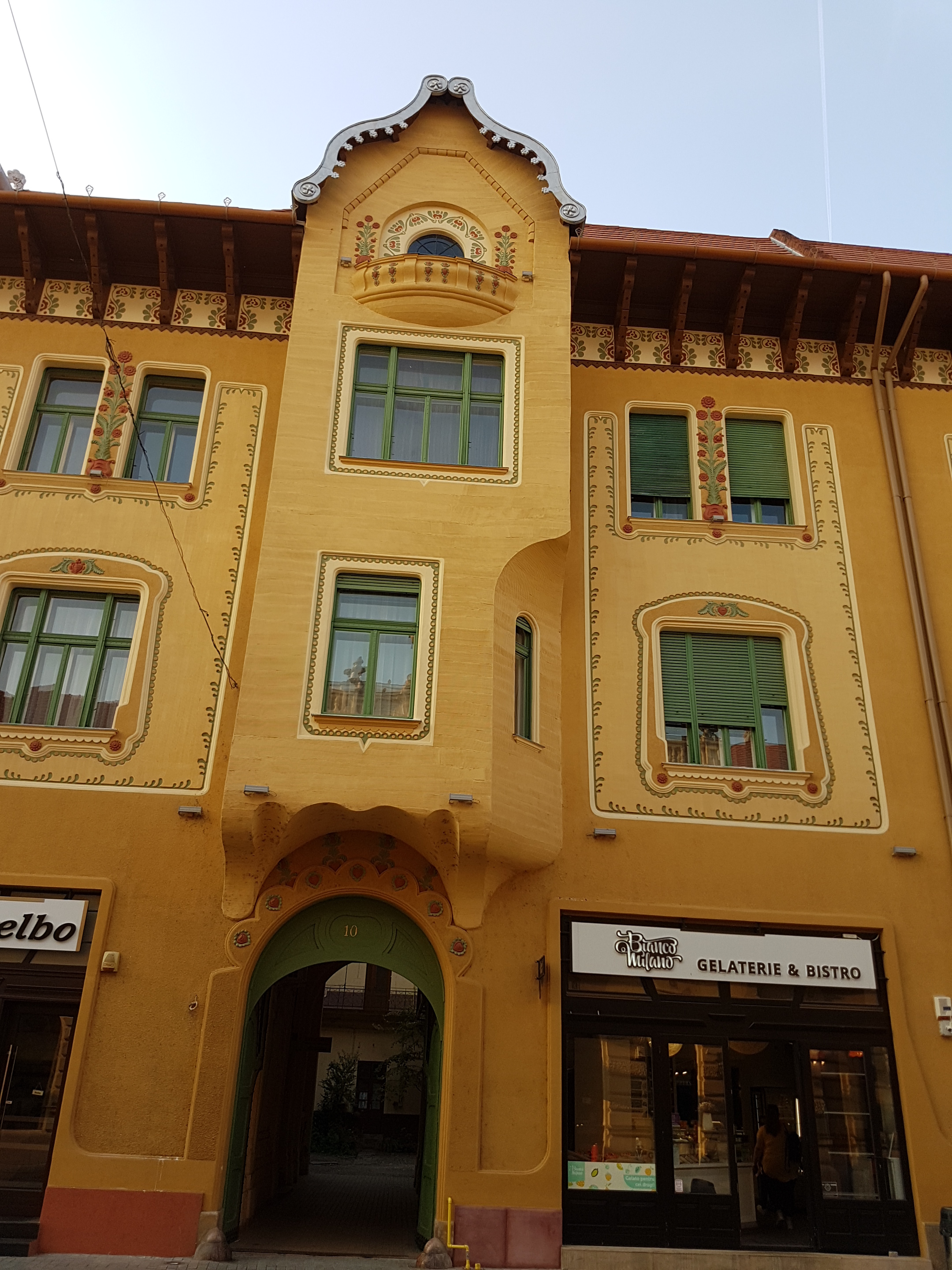 Nu cred ca am mai văzut până acum o clădire în stilul arhitectural Secession, impresionante la palatul Moskovits Miksa sunt detaliile de pe fațadă, ornamenetele florale și sculpturile baroce de capete umane. Deosebită este culoarea palatului, un albastru bleu ciel care te îndeamnă la visare atunci când e mângâiat de razele soarelului la apus.