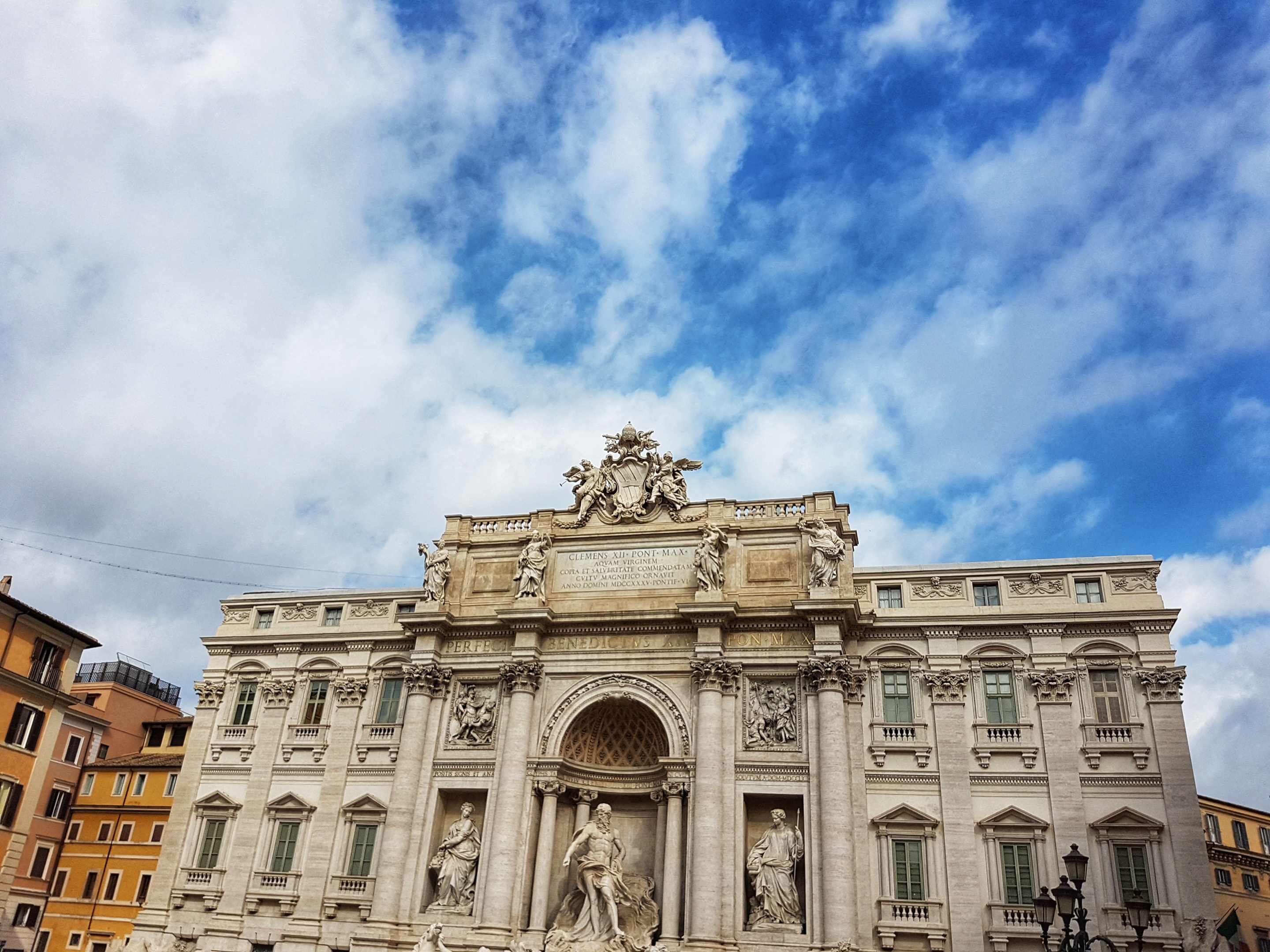 Fontana di Trevi se află la captul unui apeduct construit în anul 19 î.Hr. și aduce apă de la Izvoarele Salone, de la o distanță de 20 km de Roma. Papa Clement al XII-lea îi dă ordin arhitectului Nicola Savi să construiască această fântână în stil baroc care este finalizată în anul 1762.