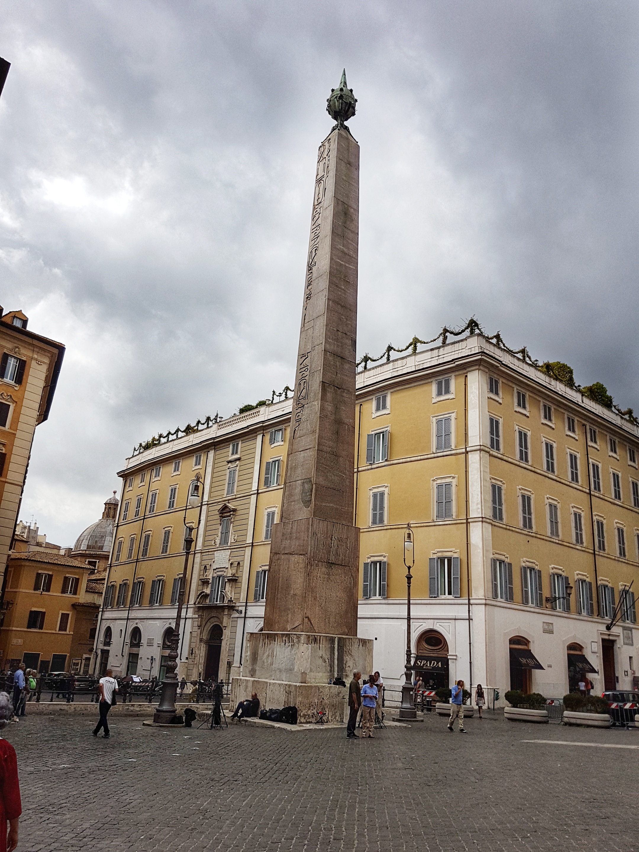 În fața Pantheonului se afă o frumoasă fântână barocă cu un obelisc egiptean dedicat zeiței Isis. Obeliscurile, la fel ca și piramidele în Egiptul antic, erau considerate razele de piatră ale zeului soarelui Ra, acestea făcând legătura între lumea oamenilor și lumea zeilor.