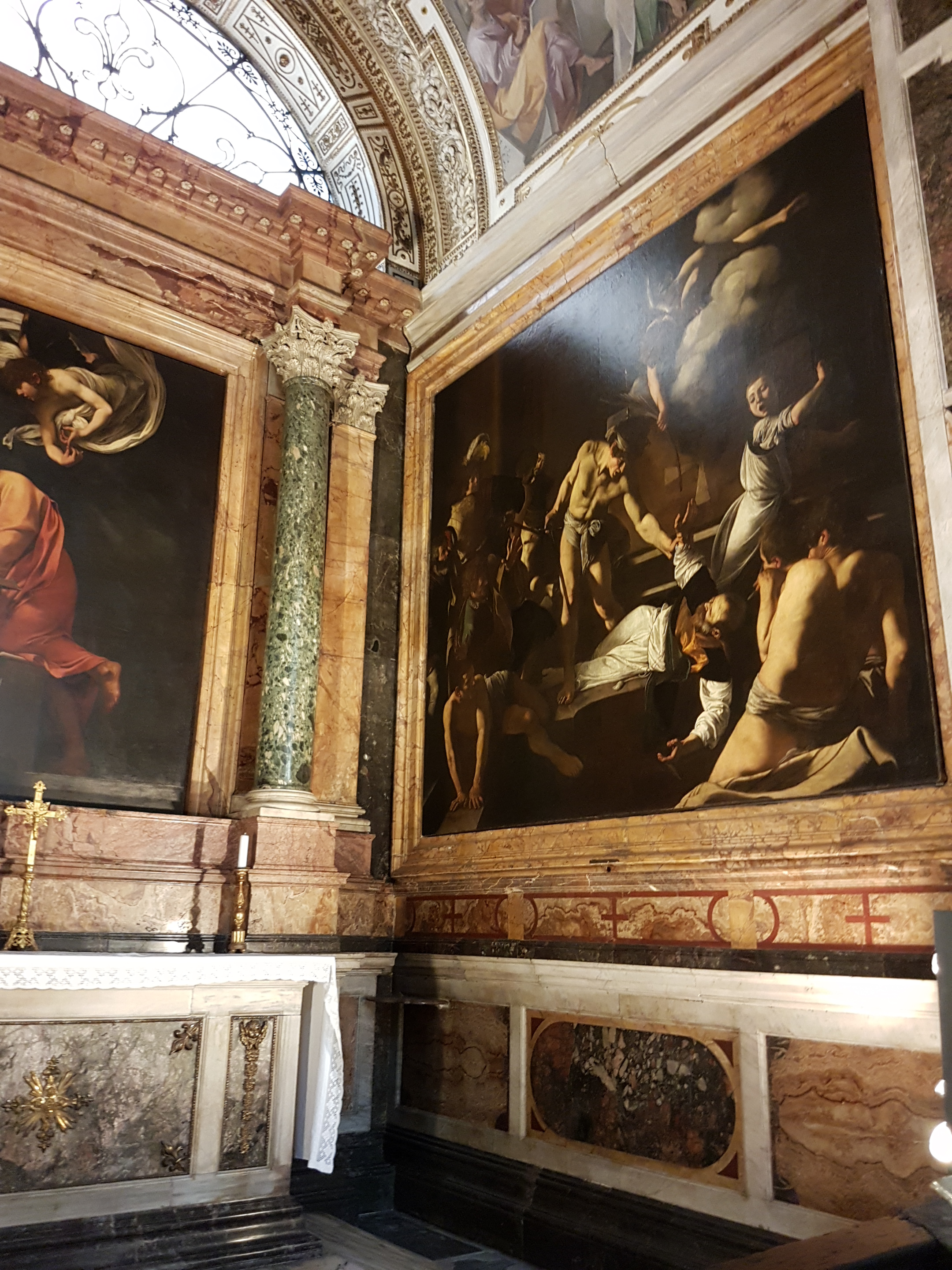 Plecând din Piazza della Rotonda pe Via Giustiniani, ajungi la Biserica San Luigi dei Francesi unde poți admira picturile lui Caravaggio: Martiriul Sfântului Matei, Chemarea lui Matei și Sfântul Matei și Îngerul. O altă operă impresionantă a lui Caravaggio, pictura “Tăierea Capului Sf. Ioan Botezatorul” am văzut-o în Co-Catedrala Sf.Ioan din Valletta, Malta.
