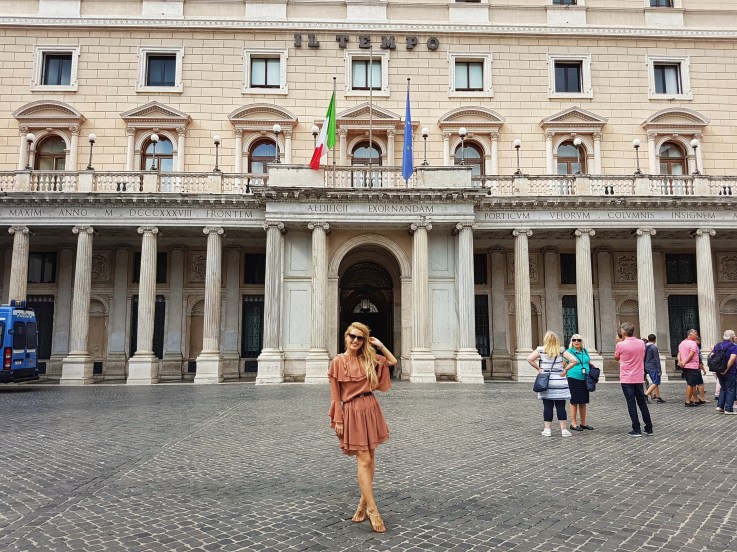 Din Piazza Colonna dacă treci pe sub impetuoasele arcade ale sediului ziarului “Il Tempo”, ajungi în Piazza din Monte Citorio.
