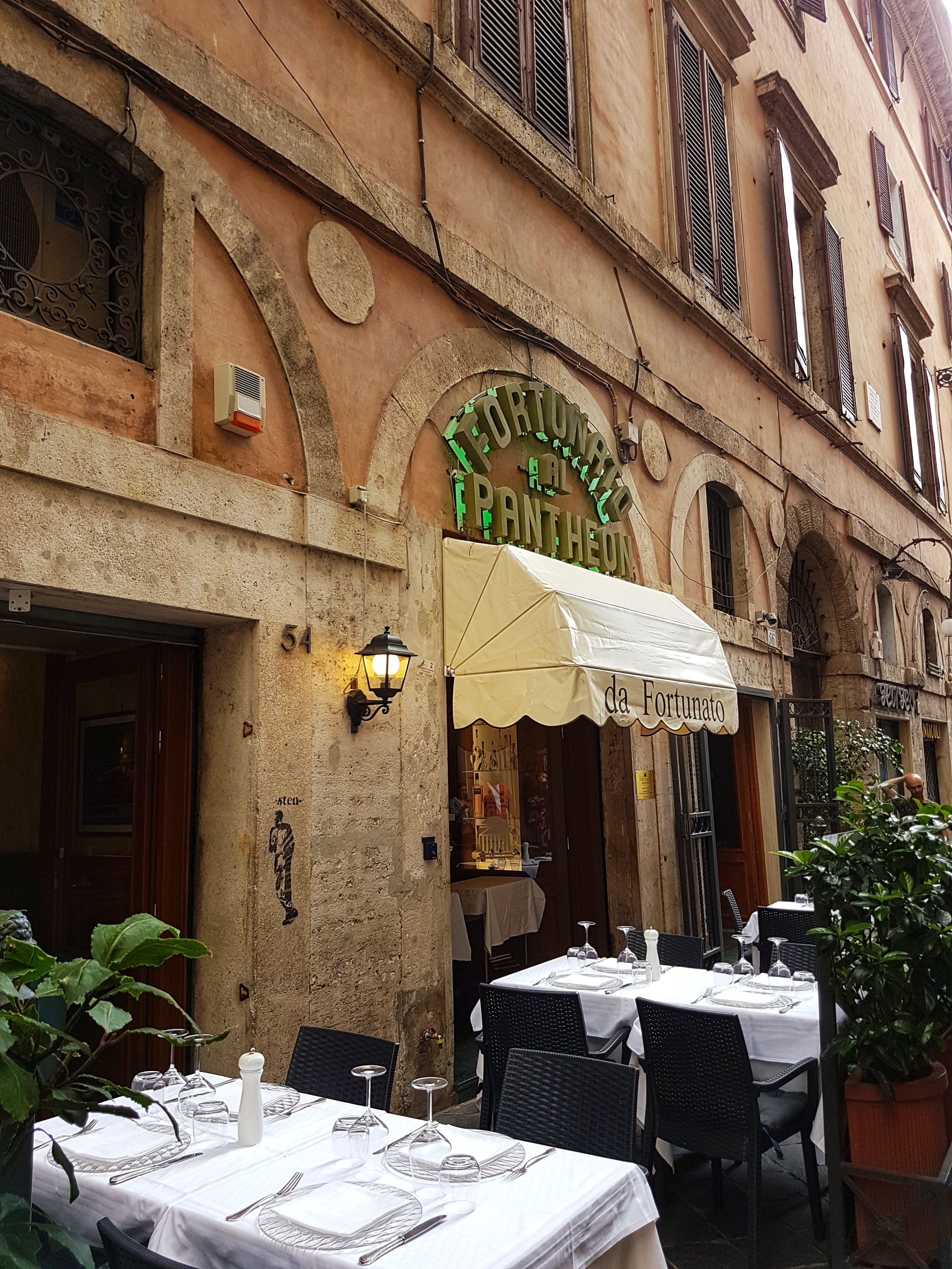 O zonă absolut superbă unde poți să te oprești să mânănci este Piazza della Rotoda, unde de la Ristorante Fortunato al Pantheon ai o priveliște de ansamblu asupra maiestosului Pantheon.