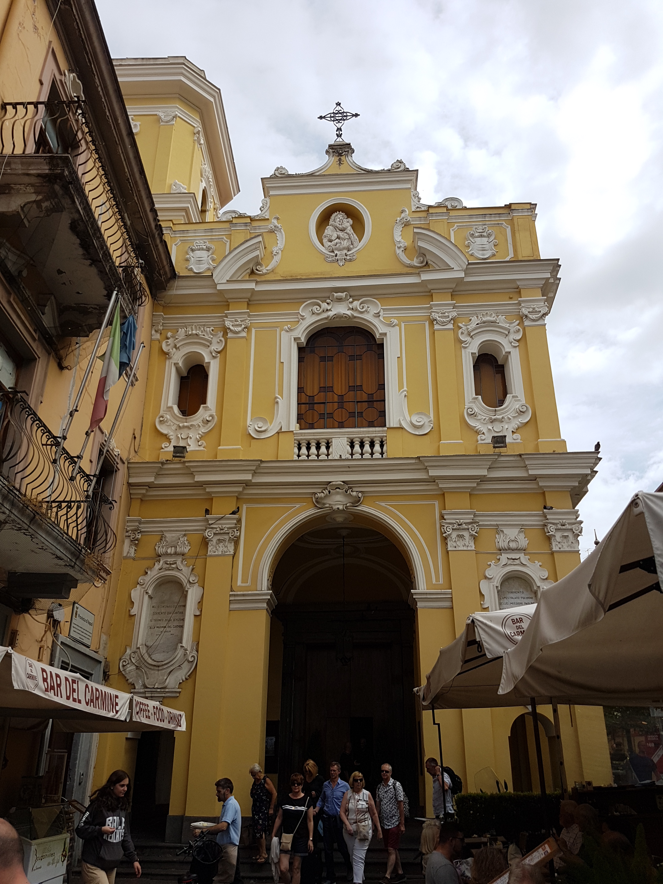 În Sorrento poți să începi plimbarea din Piazza Tasso, principala piață din oraș, de unde pornesc cele mai importante străzi: Corso Italia și Via Luigi de Maio. Aici poți vizita biserica Santa Maria del Carmine.