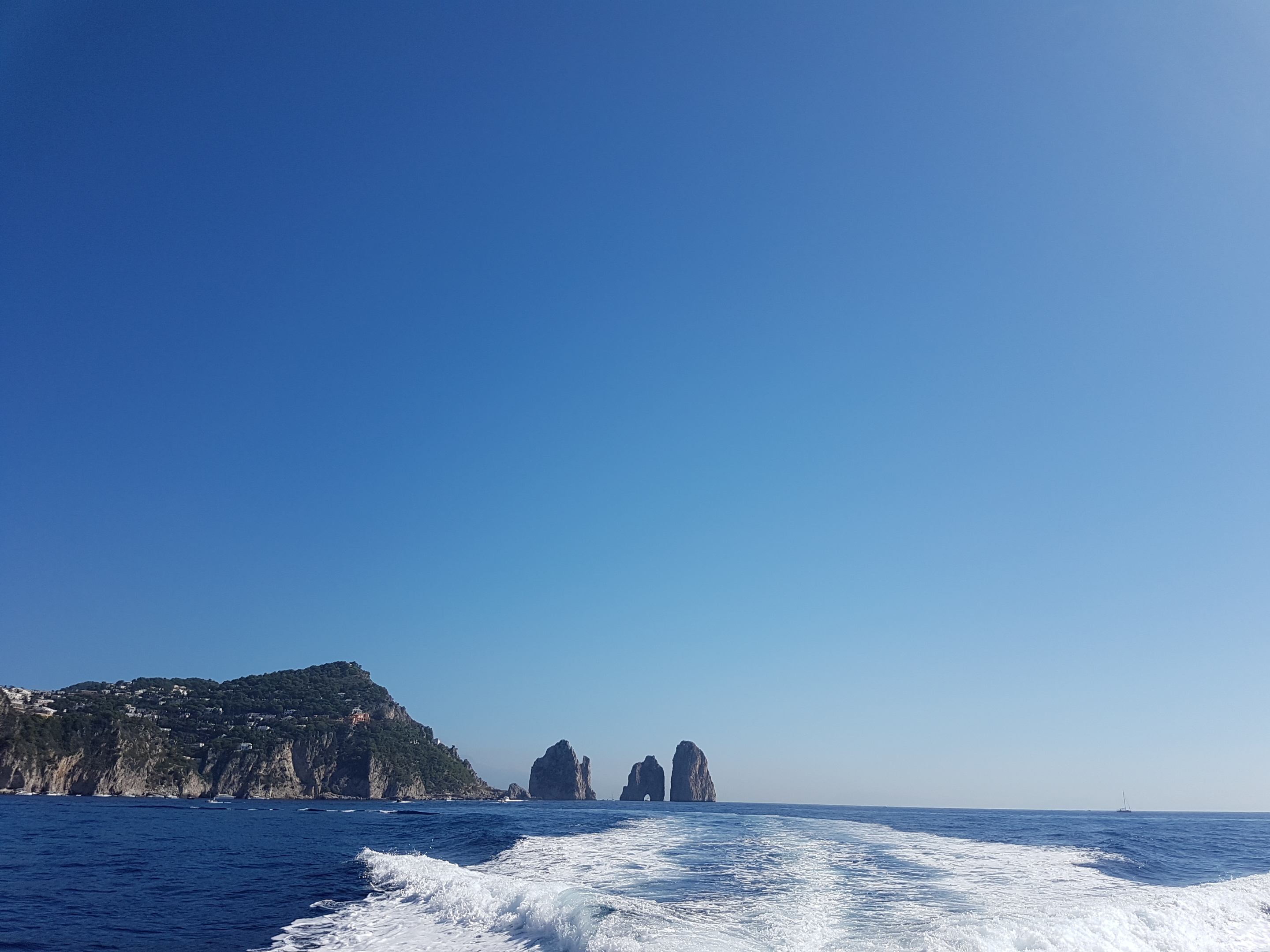 Pe insula Capri se ajunge din Napoli în 50 de minute, cu un catamaran. În Golful Napoli se află 3 insule: Capri – cea mai mică, Procida și Ischia – cea mai mare și de origine vulcanică.