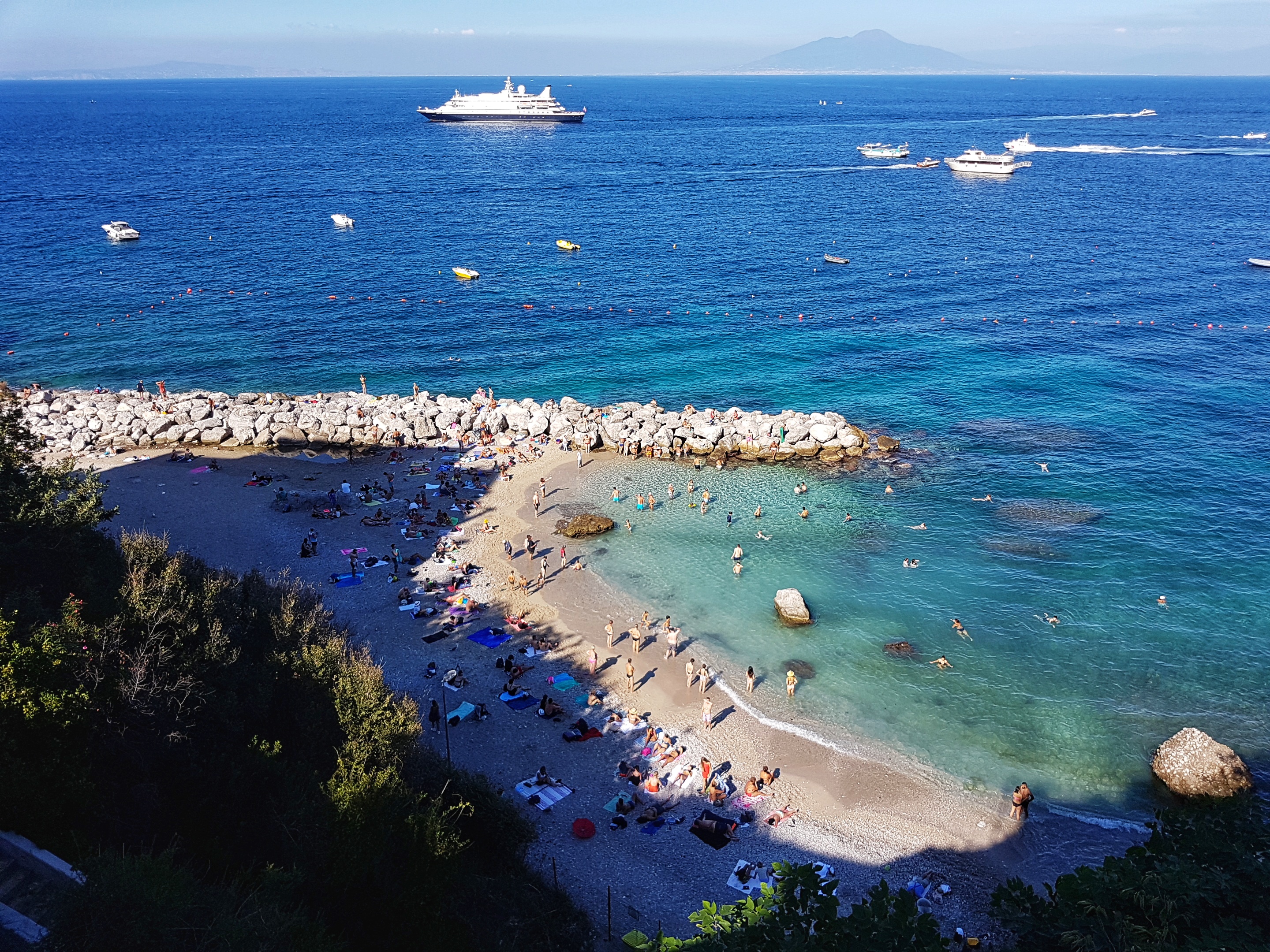 Lipsa nisipului de pe plajă este compensată de peisaj și de claritatea apei, care îți dă posibilitatea să vezi până la adâncime foarte mare. Chiar dacă în Capri nu sunt plaje cu nisip, prezența pietrelor din apă este compensată de frumusețea peisajelor.