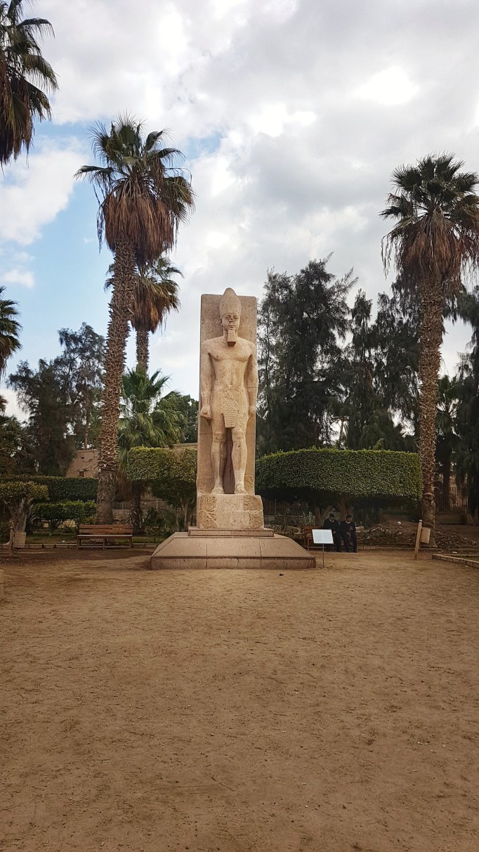 Orașul Memphis a fost fondat în anul 3.100 î.H. de către Menes, conducătorul primei dinastii egiptene care a unit cele două regate: Regatul Egiptean de Sus și cel de Jos. Chiar dacă nu a mai rămas nimic din grandorea vechii capitale a Egiptului, vei fi totuși impresionat de statuia lui Ramsses al II-lea, înaltă de 10 m și realizată din granit roșu. Detaliile sculpturii sunt fascinante. Cobra de pe coronă simboliza protecția, iar faptul că este reprezentat cu barba în jos, înseamnă că statuia a fost realizată în timpul vieții. Faraonii erau reprezentați purtând barbă aceasta fiind un simbol al înțelepciunii.