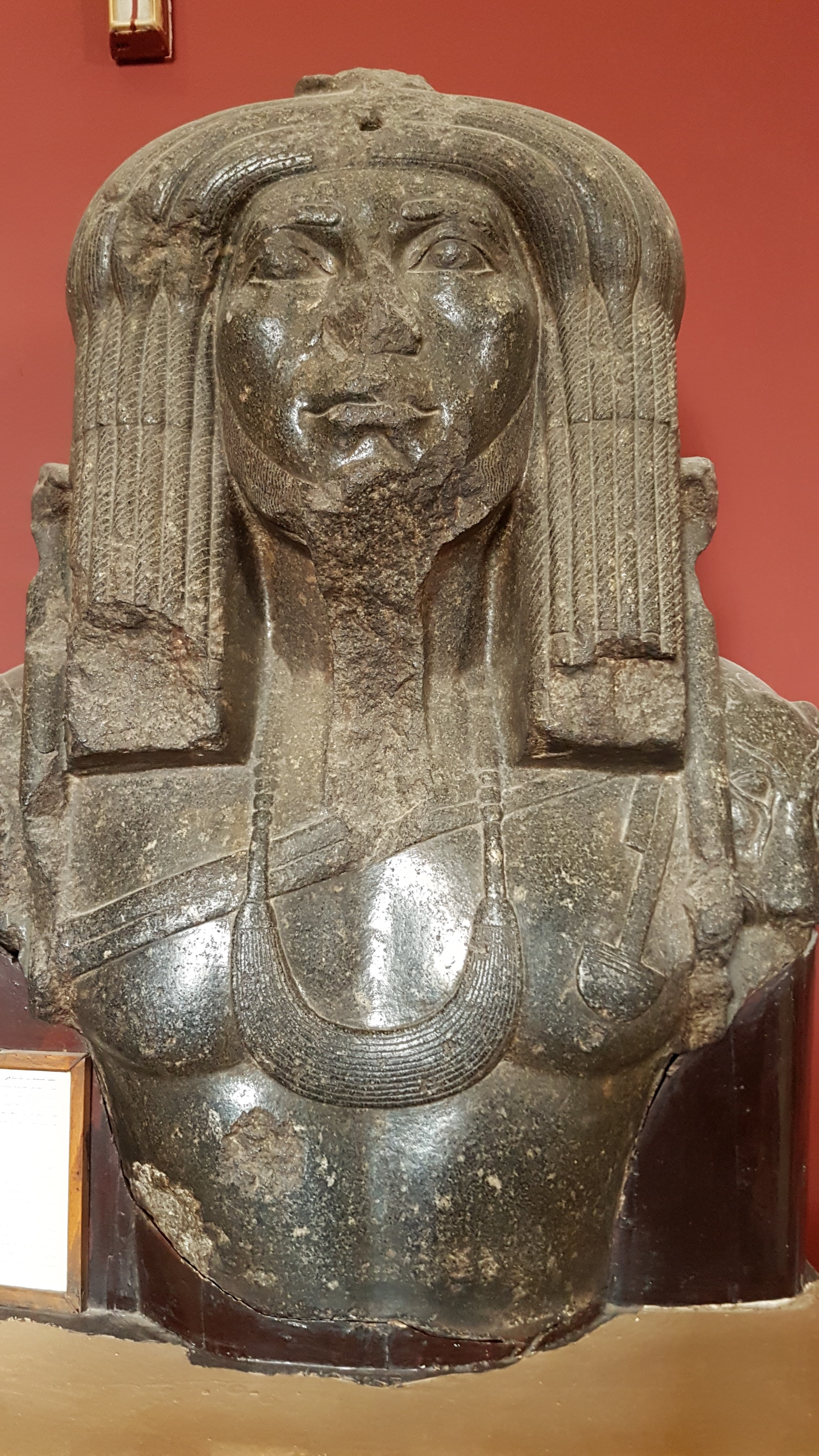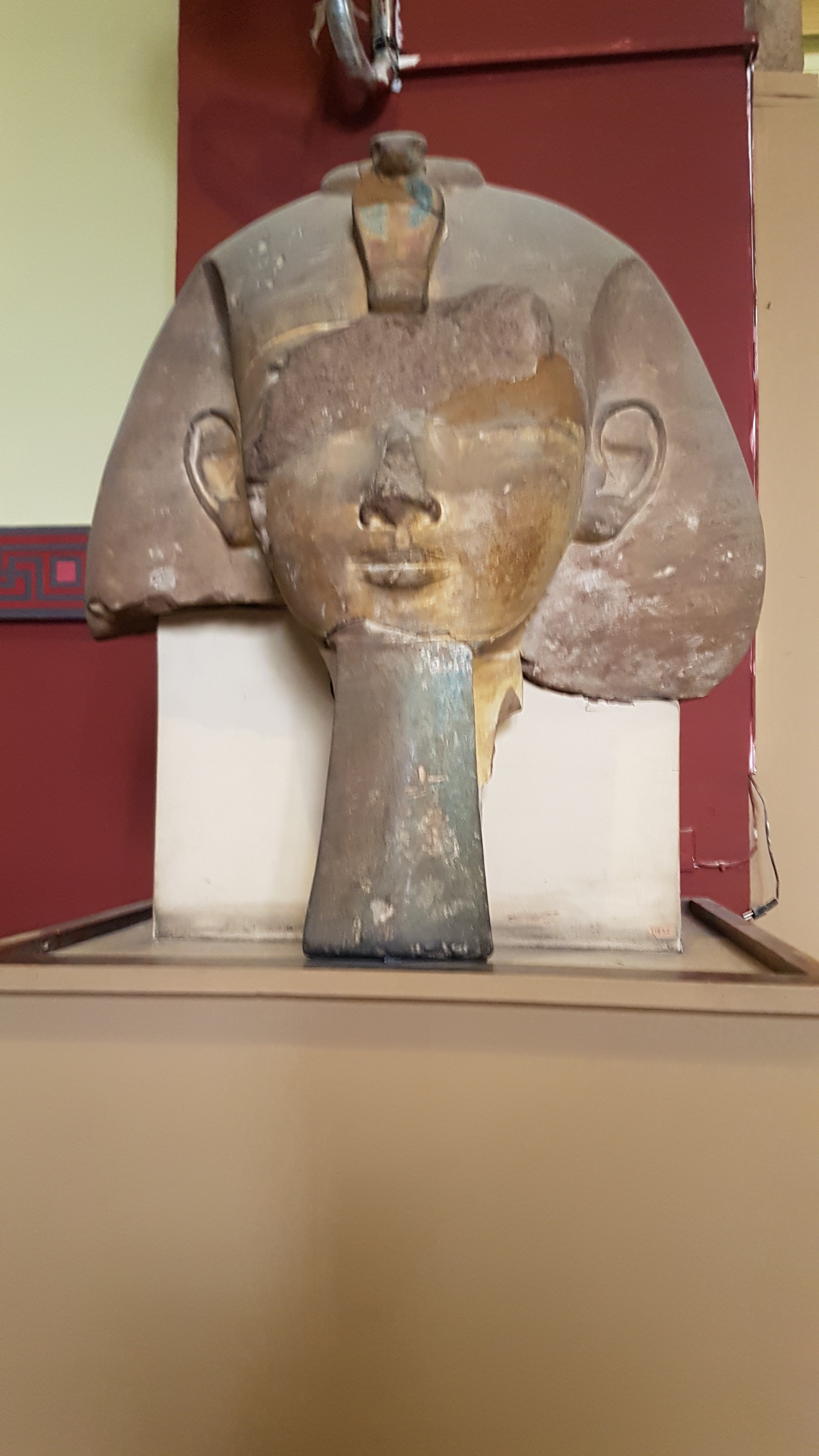 La intrarea în muzeu te întâmpină statuia impresionantă a lui Ramsses al II-lea realizată în urmă cu 3.200 de ani, din granit roșu și care cântărește 83 de tone. Ramsses al II-lea poartă cele două coroane ale Egiptului de Nord și de Sud pe care are capul de cobră ce simbolizează protecția. Este reprezentat cu barba falsă dreaptă înseamnă că faronul era în viata când i s-a făcut statuia. Dacă barba era curbată, înseamnă că statuia a fost realizată după moartea faronului. Ramsses poartă kilt și are un cap de tigru sculptat ce simbolizează puterea. Piciorul stâng în spate transmite puterea și siguranța unuia dintre cei mai importanți faroni ai Egiptului. Pe umeri are două cartușe, pe umărul drept are numele lui scris cu hieroglife, iar pe umărul stâng are numele soției lui favorite, Nefertari. Numele soției este scris pe cartușul de pe umărul stâng pentru a fi aproape de inima lui. Ramsses a iubit-o atât de mult pe Nefertari încât i-a dedicat și un templu la Abu Simbel. Statuia acesteia poată fi admirată la intrarea în muzeu.
