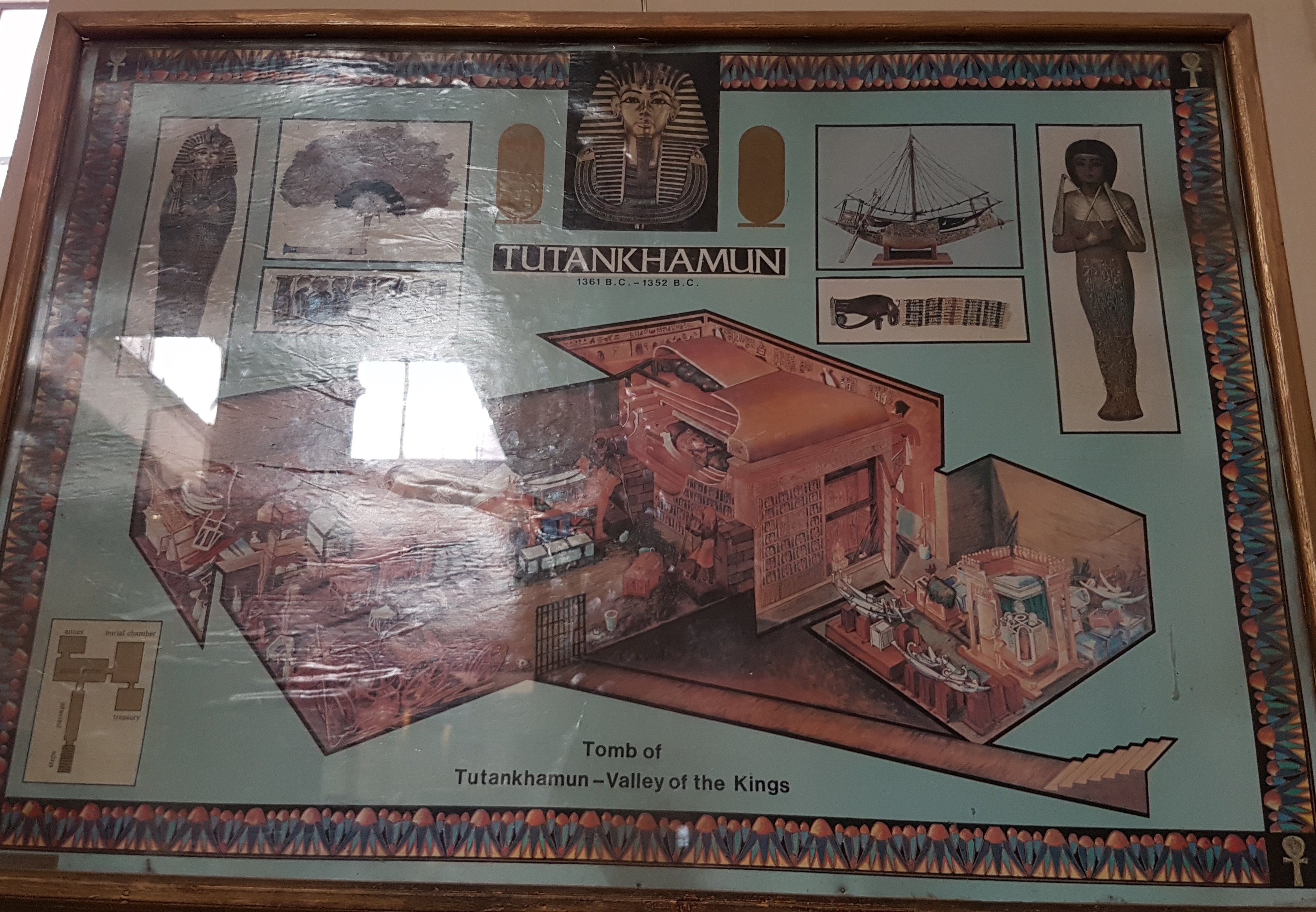Tutankamon a murit la 18 ani și nu a avut nicio semnificație în istoria Egiptului. A devenit faimos datorită mormântului lui pentru că a fost singurul care a fost descoperit intact, restul fiind jefuite încă din Antichitate. Pe 16 februarie 1922 a fost descoperit de Howard Carter în Valea Regilor unde încă se mai află sarcofagul din calcar.