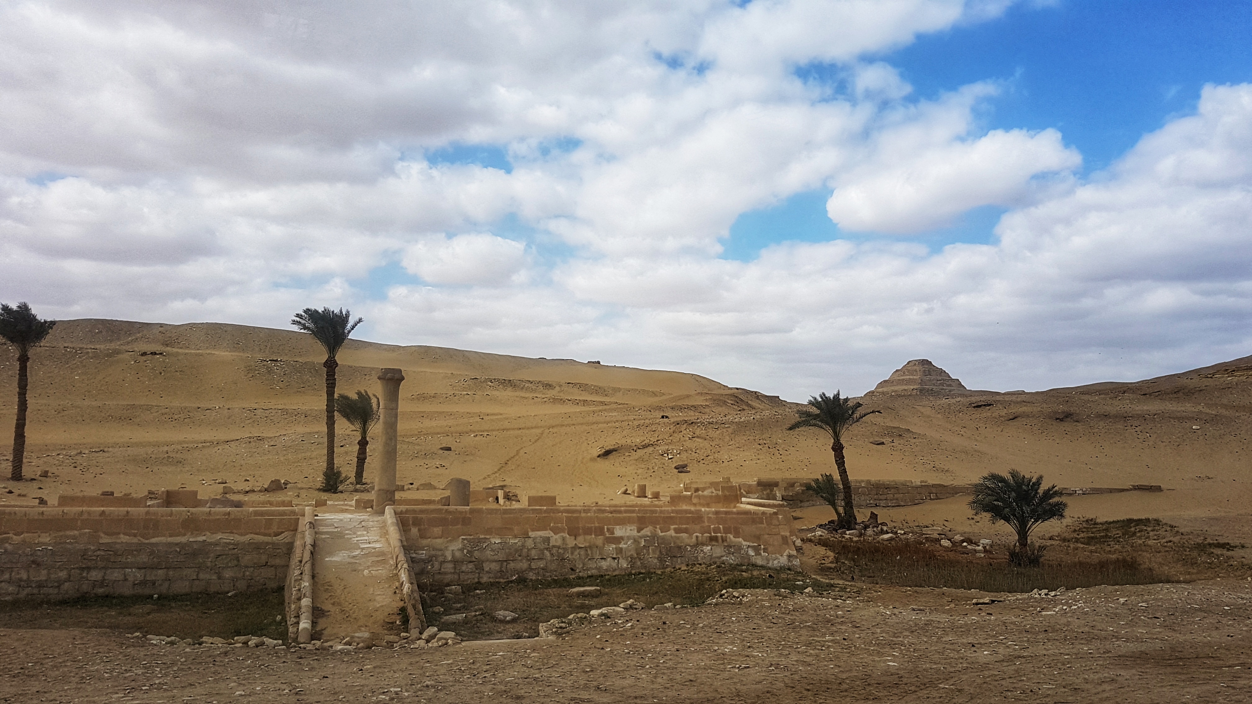 La nord – vest de Memphis se află Saqqara, locul unde Imhotep a ridicat prima piramidă din lume, prima construcție din piatră din lume. Priamidele au fost ridicate din necesitatea de a proteja mormintele regilor de animalele sălbatice din deșert care le dezgropau pentru a devora cadavrele. Inițial mormintele regilor și egiptenilor cu rang înalt erau acoperite de mastaba – o construcție rectangulară din calcar sau cărămidă. Imhotep a construit 6 mastabe suprapuse în perioada 2667-2488 î.Hr și astfel a apărut piramida în trepte a faronului Djoser.
