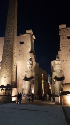 statuile lui Ramsess al IIlea si Obelixul la intrarea in templul din Luxor