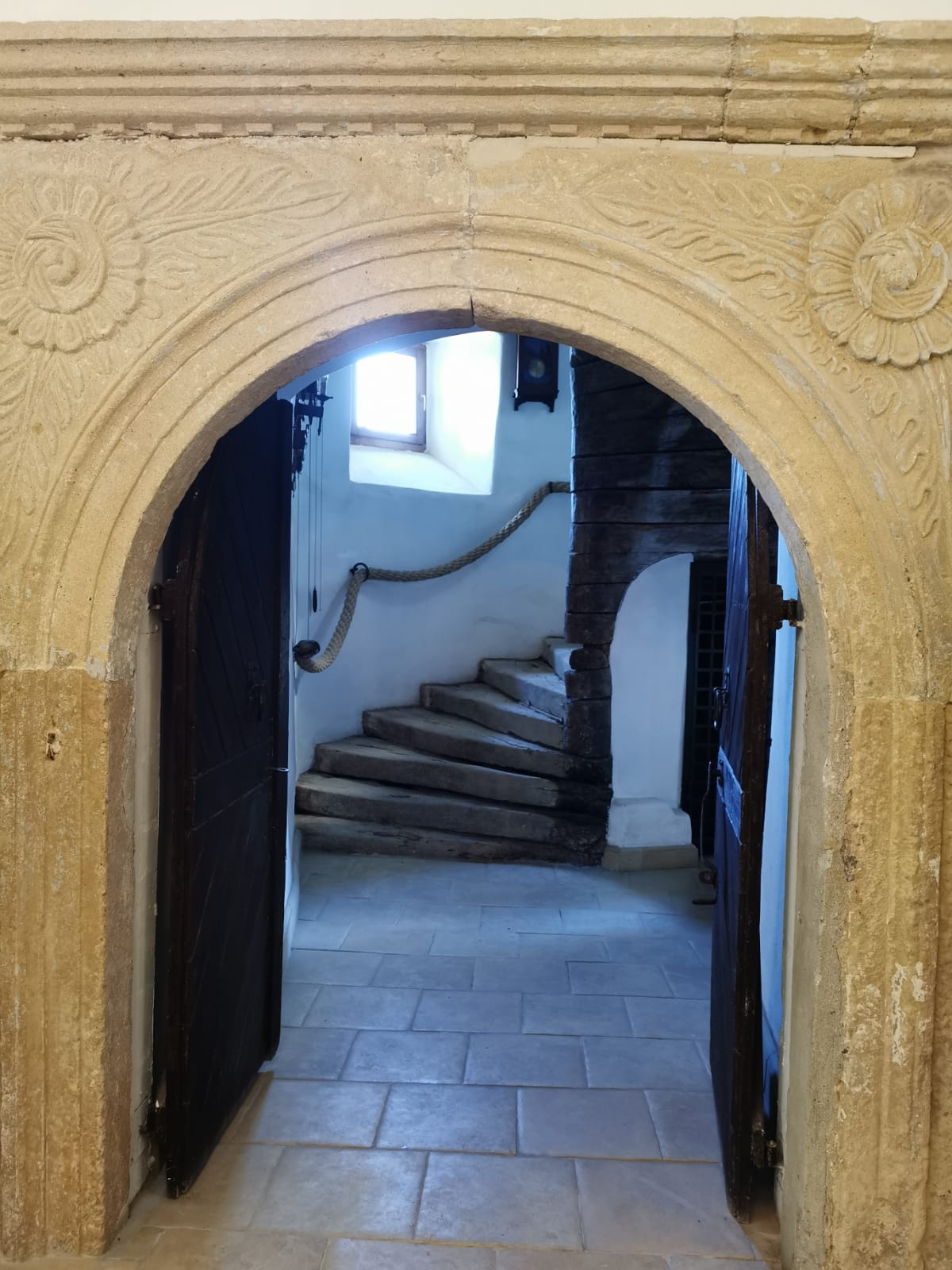 Tot în categoria lucruri unice la castelul Bethlen – Haller se încadrează și scara din lemn, în formă de evantai, care leagă parterul de etajul 1 și 2 al castelului. Scara impresionează prin faptul că acum 500 de ani astfel de scări în formă de evantai erau realizate doar din piatră. Lemnul folosit la realizarea ei a fost atât de solid încât s-a păstrat până în zilele noastre. Sub această scară se află un tunel care face legătura cu alt castel Bethlen din Sânmiclăuș. Pe vremuri, acest tunel de aproximativ 15 km era parcurs cu trăsura. Din păcate, castelul Bethlen din Sânmiclăuș nu este restaurat și nu se poate vizita fiind într-o stare destul de avansată de deterioare. În prezent, cele două castele Bethlen aparțin fetelor familiei Necșulescu, Ana Necşulescu deține castelul Bethlen – Haller din Cetata de Baltă, iar Maria Necşulescu castelul Bethlen din Sânmiclăuș. Să sperăm că și acesta din urmă va fi renovat acordânu-se atenție detaliilor renascentise, baroce și va fi deschis publicului pentru vizitare.