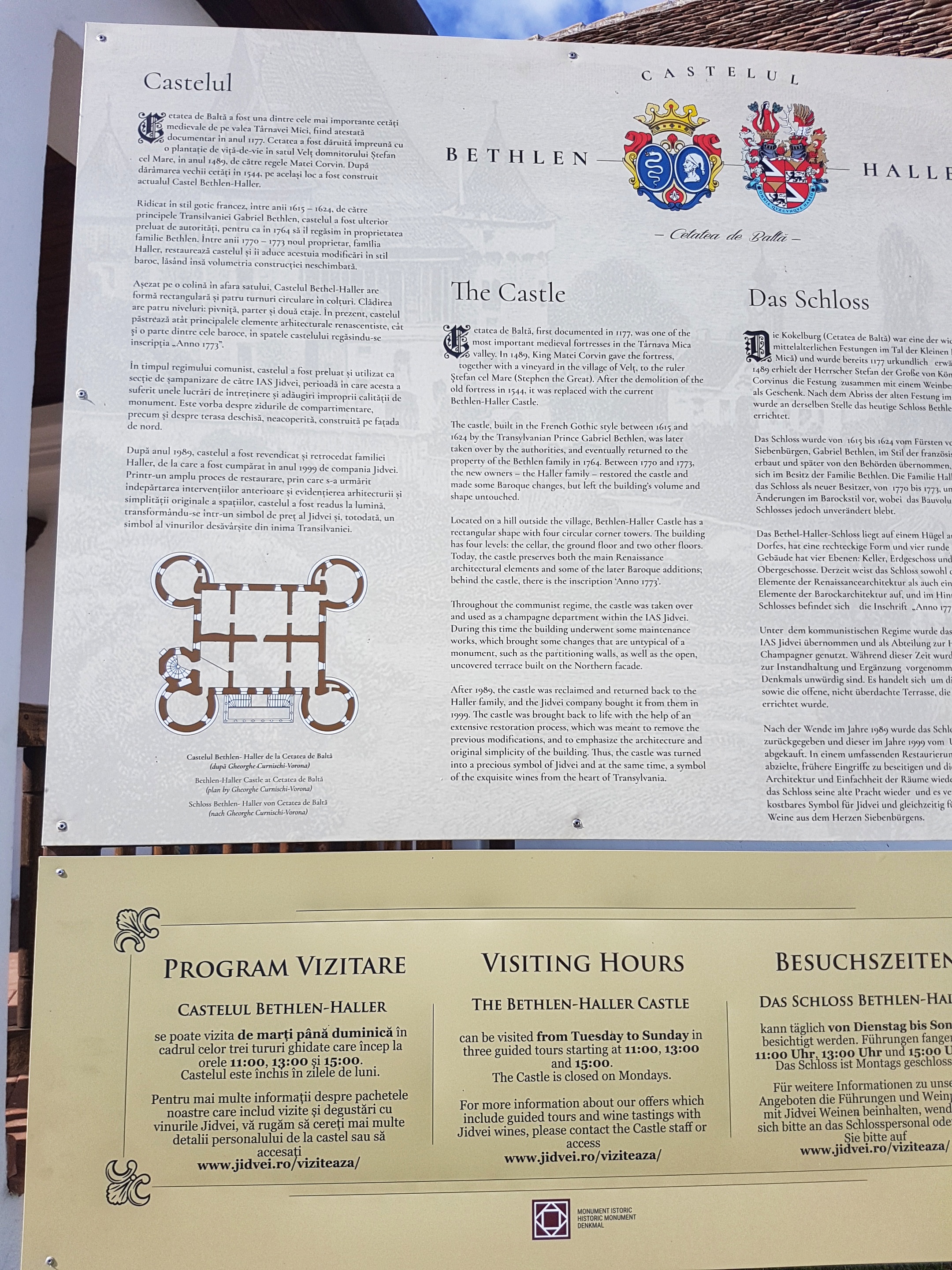 Pentru că nu se putea să fie ziua mea fără să mergem la castel, toată lumea știe pasiunea mea pentru castele, palate și conace, anul acesta am ales să vizităm Castelul Bethlen – Haller din Cetatea de Balta, mai cunoscut sub denumirea de Castelul Jidvei. Toți cred că-i recunosc silueta de pe sticla de vin Jidvei.