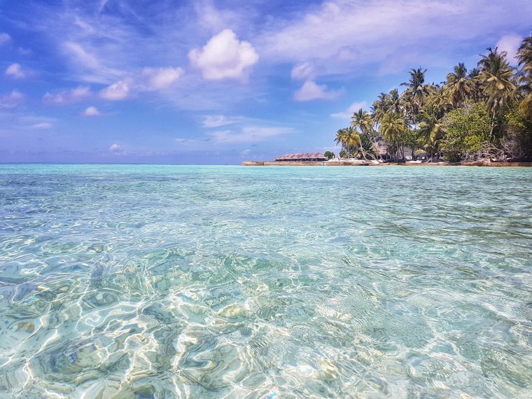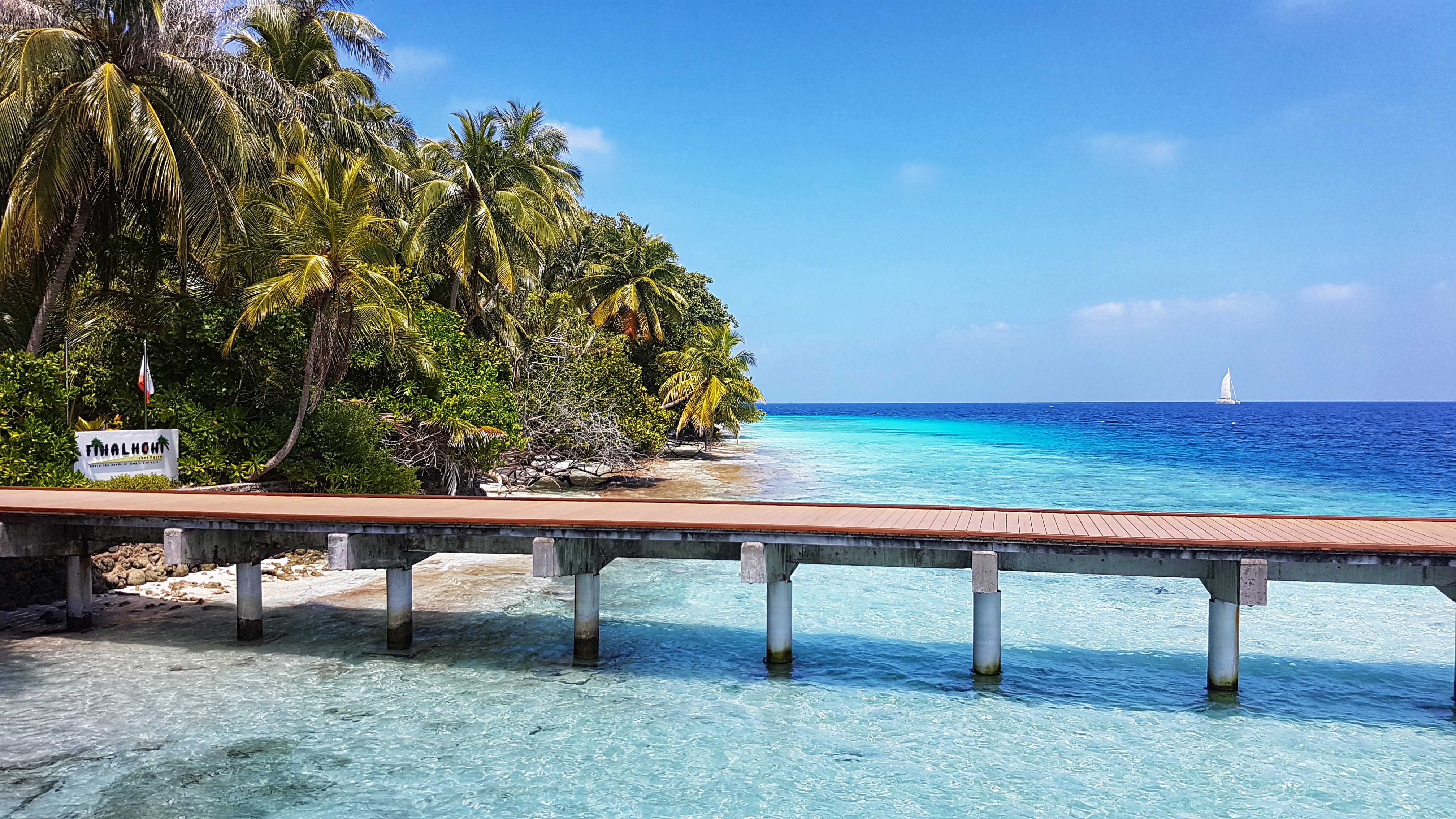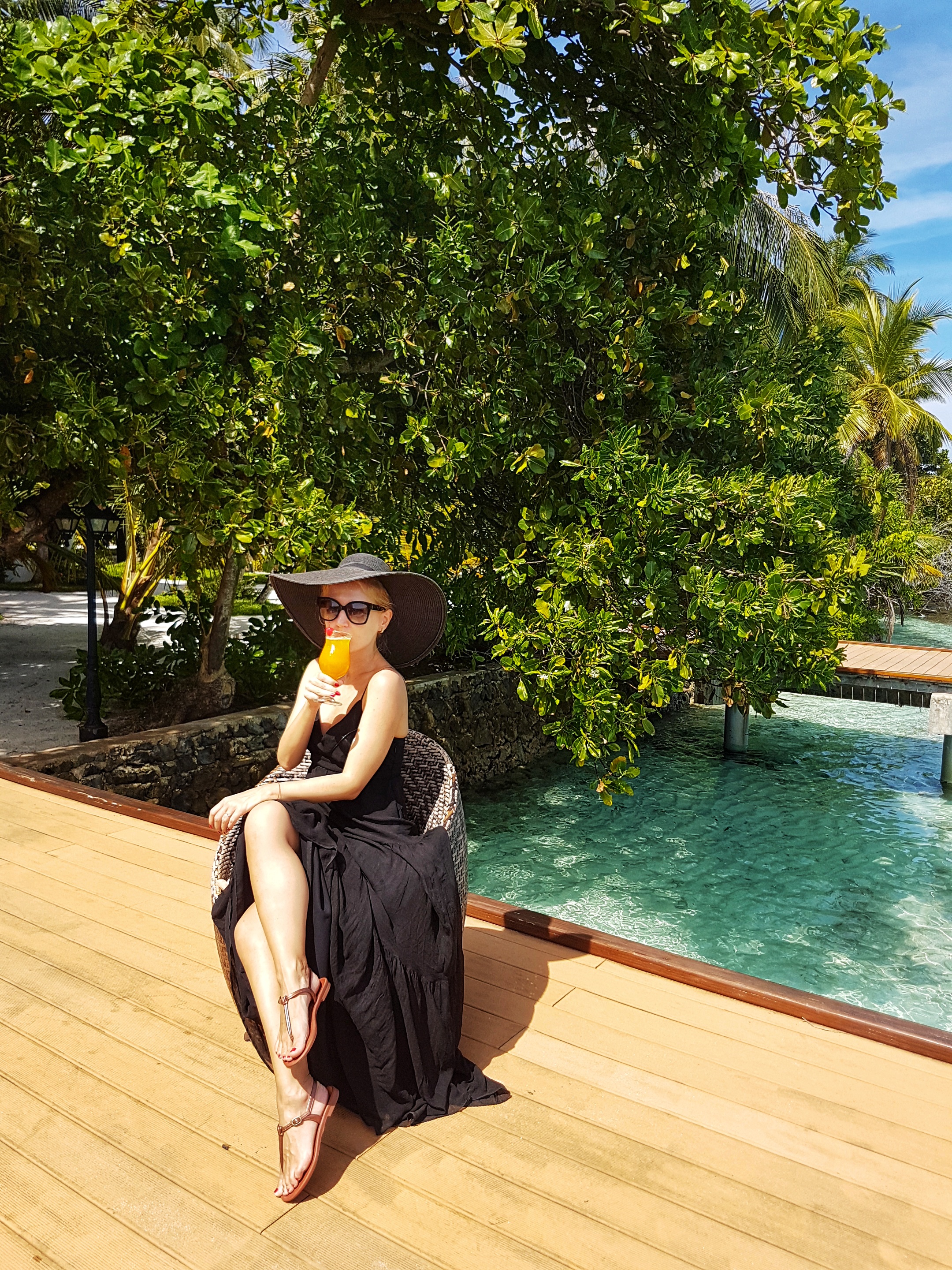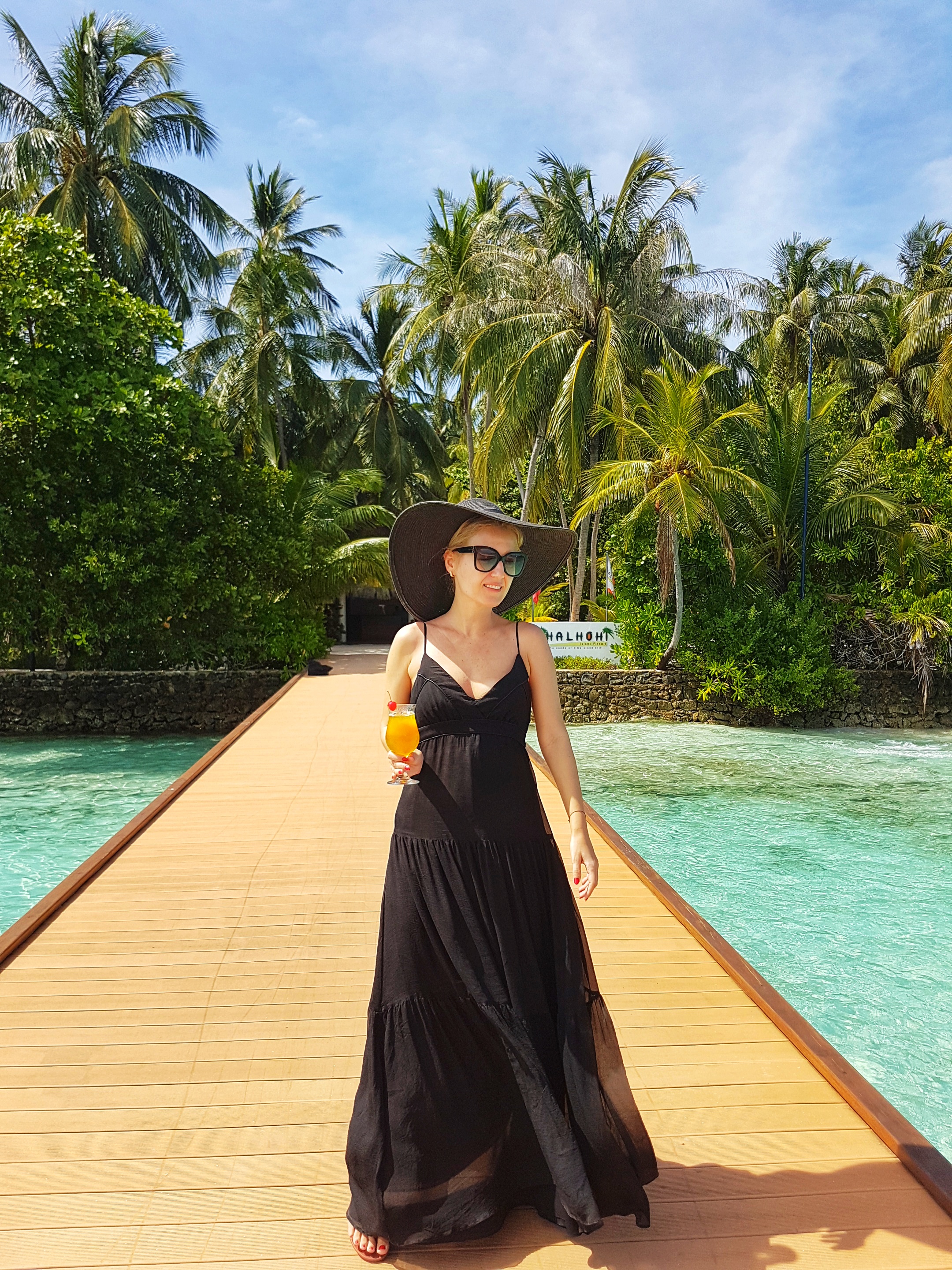Eu am stat la Fihalhohi Island Resort și este insula visurilor mele, cu apă turcoază, plajă întinsă cu nisip alb și vegetație luxuriantă. Este exact cum am visat pentru că mi-am dorit foarte mult o insulă cu palmieri până în mare, astfel încât în timpul prânzului să pot înota la umbră, fiind o mare iubitoare de apă.