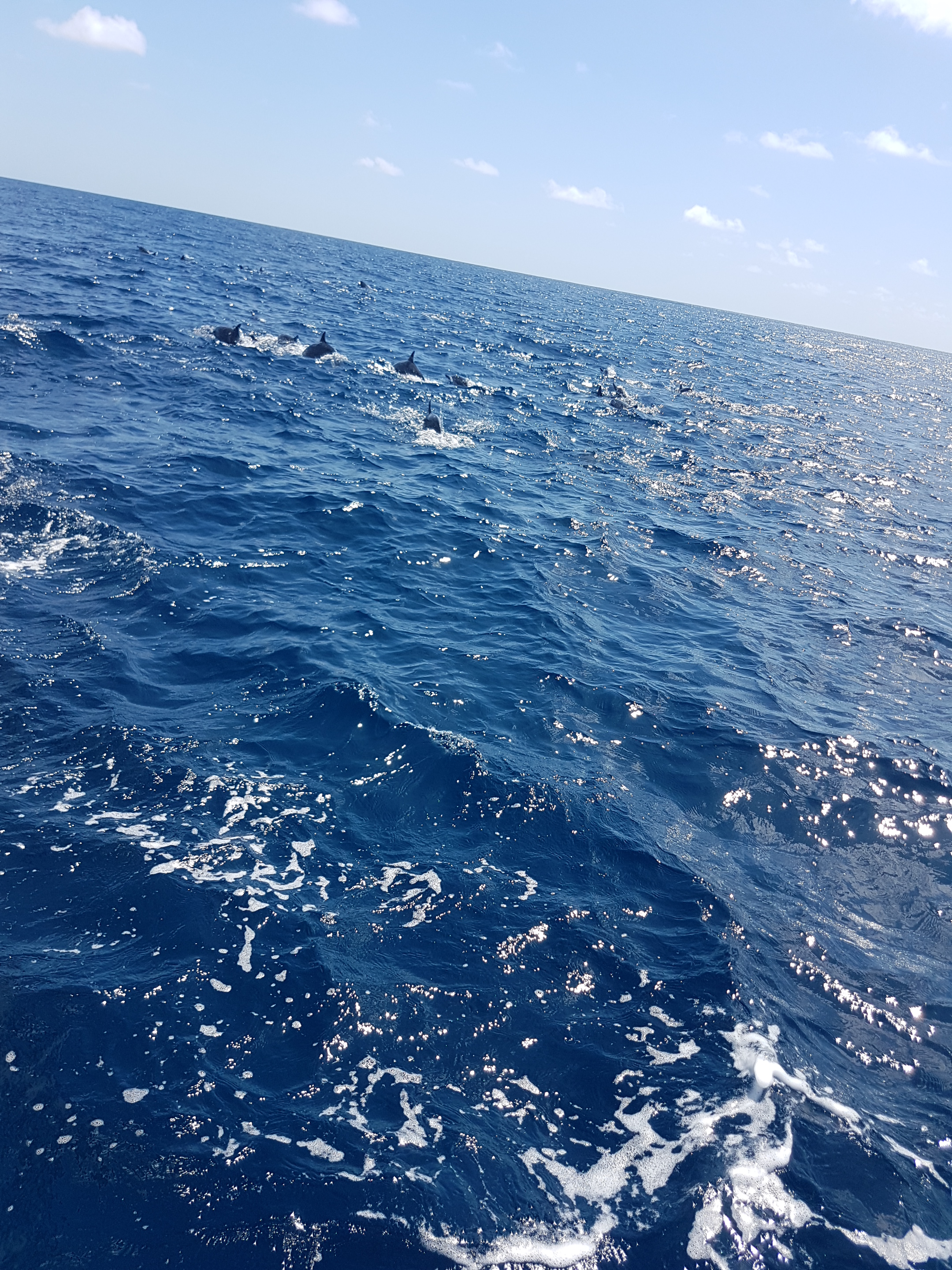 Am văzut și o mulțime de bancuri de flying fishes, care sunt o încântare să-i privești, aceștia planând în aer pe distanțe de până la 400 m. Mi-a plăcut de asemenea că de-a lungul călătoriei cu barca am observat numeroase grupuri de delfini, eu adorând delfinii. Pentru mine delfinii sunt cele mai frumoase ființe de pe pământ.