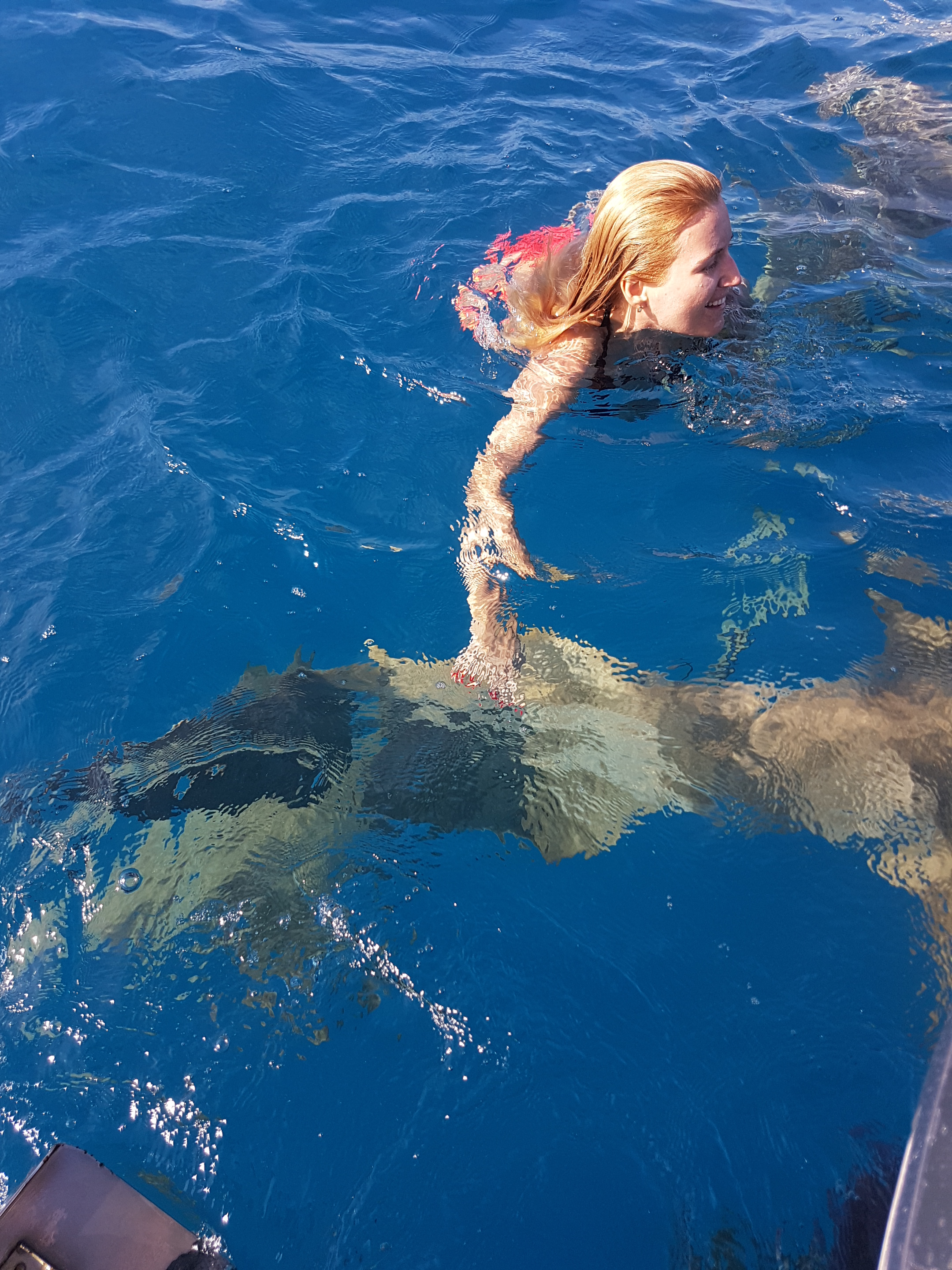 M-am uitat la zeci de filmulețe pe Instagram în care oamenii înotau cu rechinii si am visat mult la acest moment. Visul meu cel mai mare este să înot cu porcii in Exuma Swimming Pig, în Bahamas. Acolo se află și această specie de rechini, total inofensivi pentru oameni și tot cautând filmulețe cu porcii înotători, am dat și peste nurse sharks și m-am îndrăgostit de ei, visând ca într-o zi să înotăm împreună.