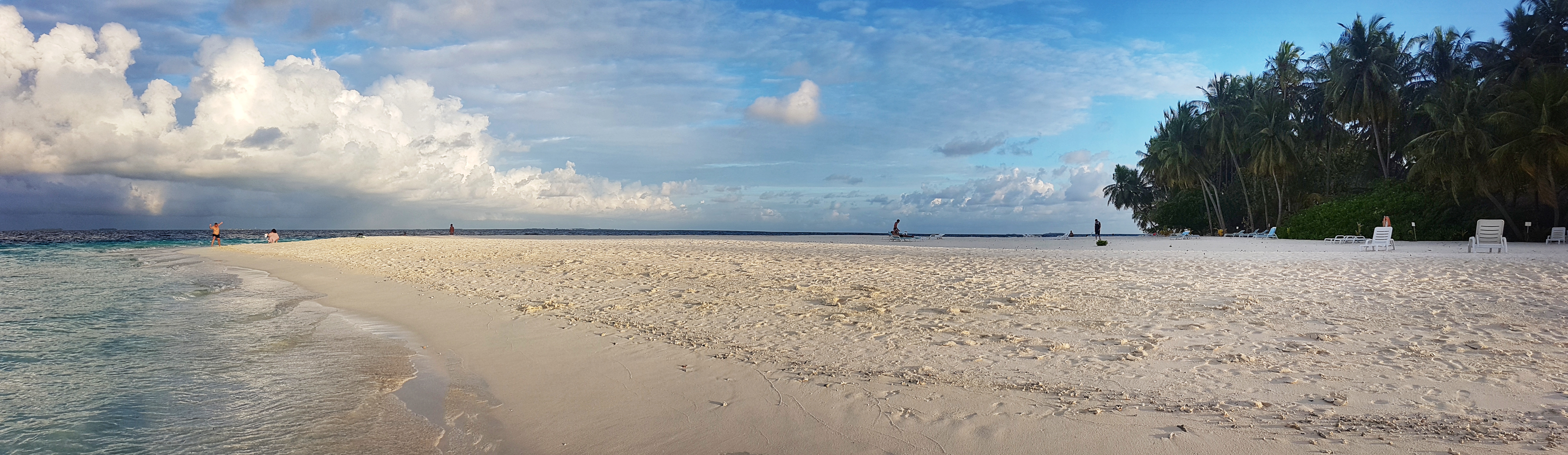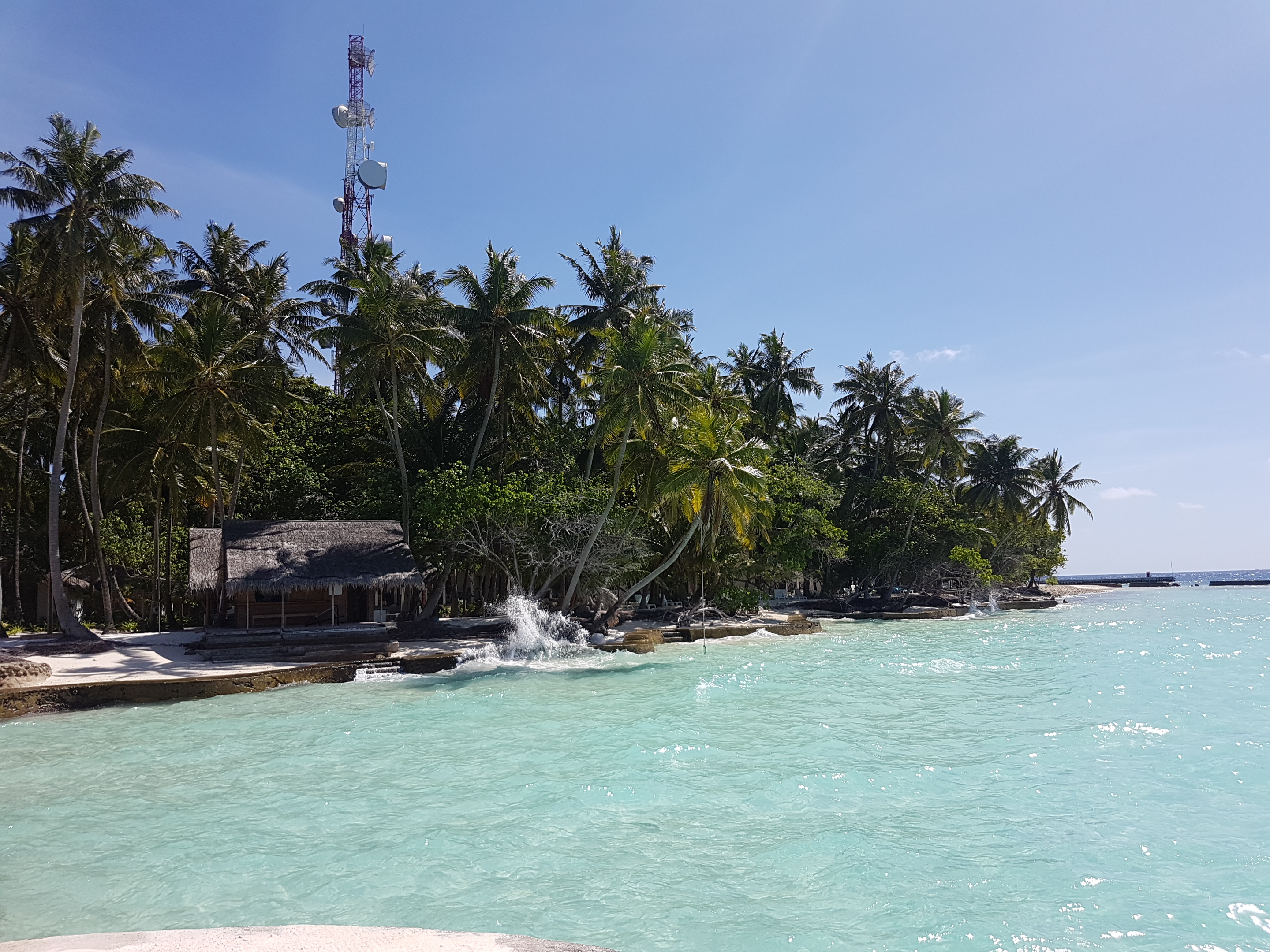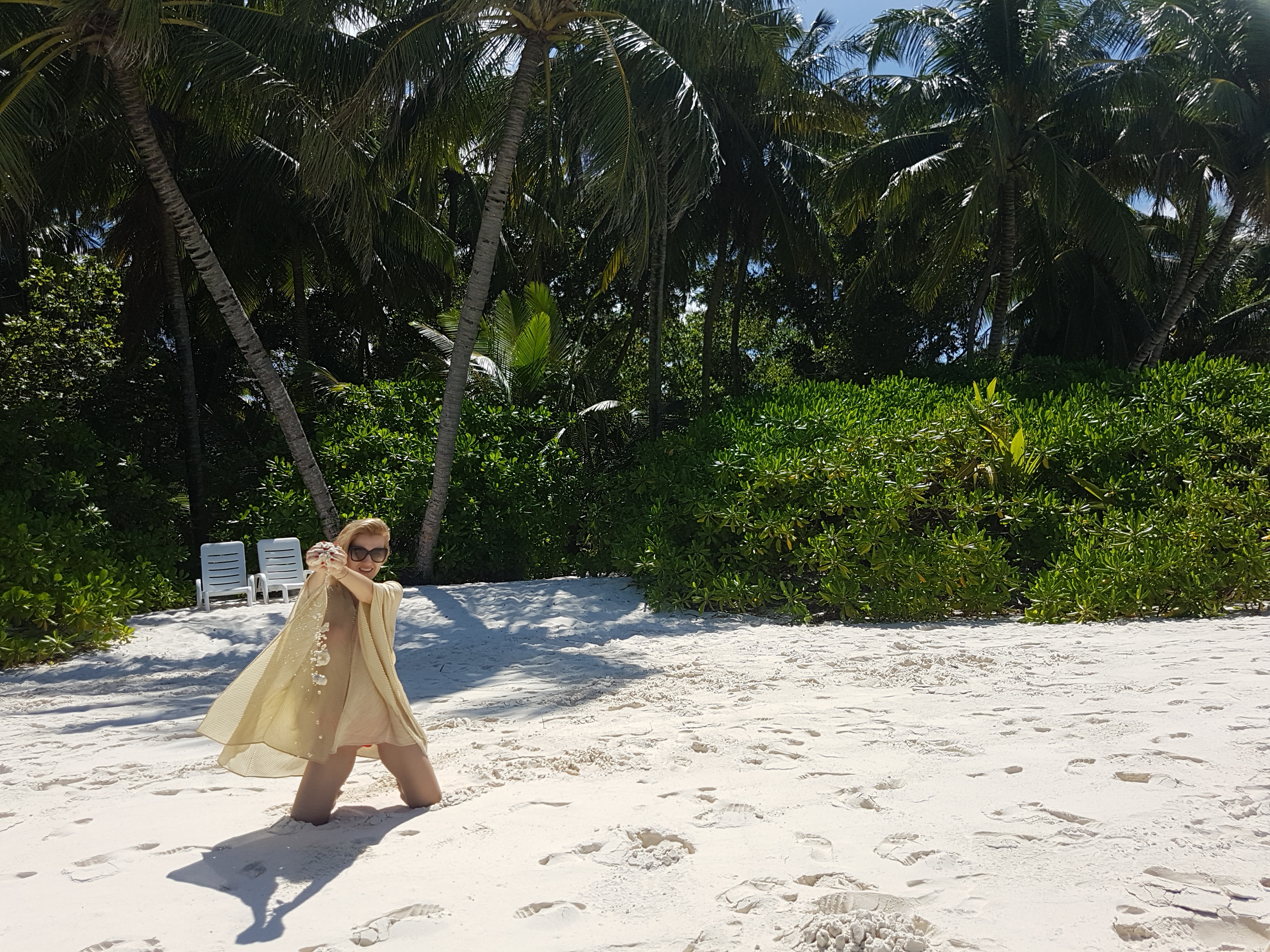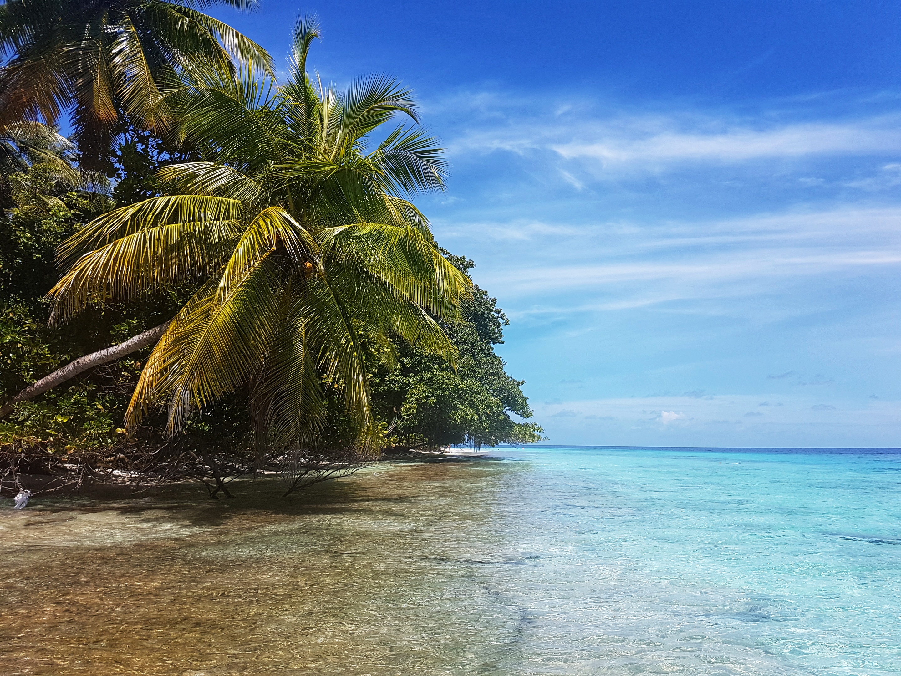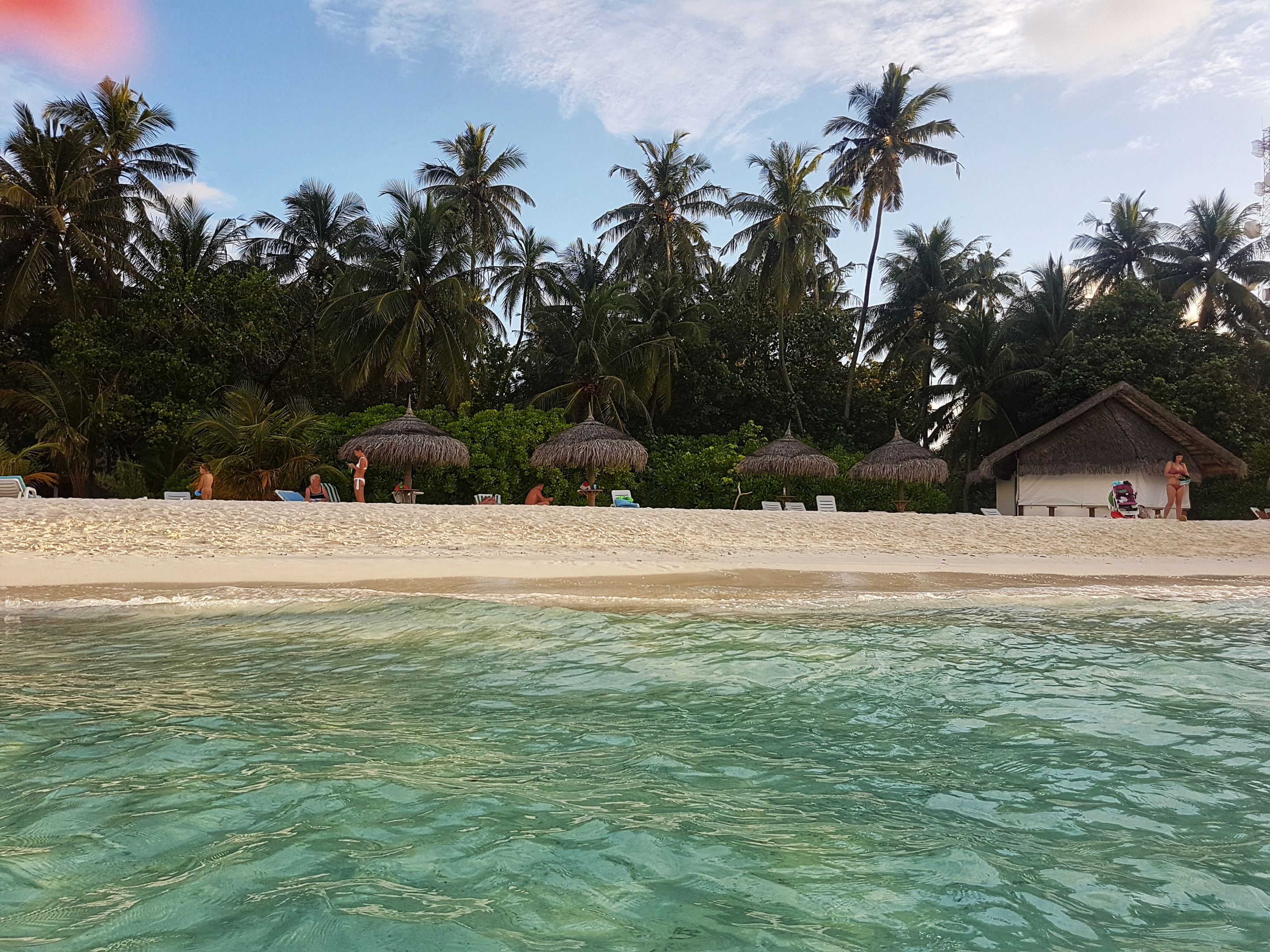 Maldive fiind o țară tropicală abundă în vegetație luxuriantă cu plante și copaci cu forme și dimensiuni impresionante. Această zonă de plajă este deosebită pentru că poți sta pe șezlong la umbra palmierului, apa ajungând până aproape de el.