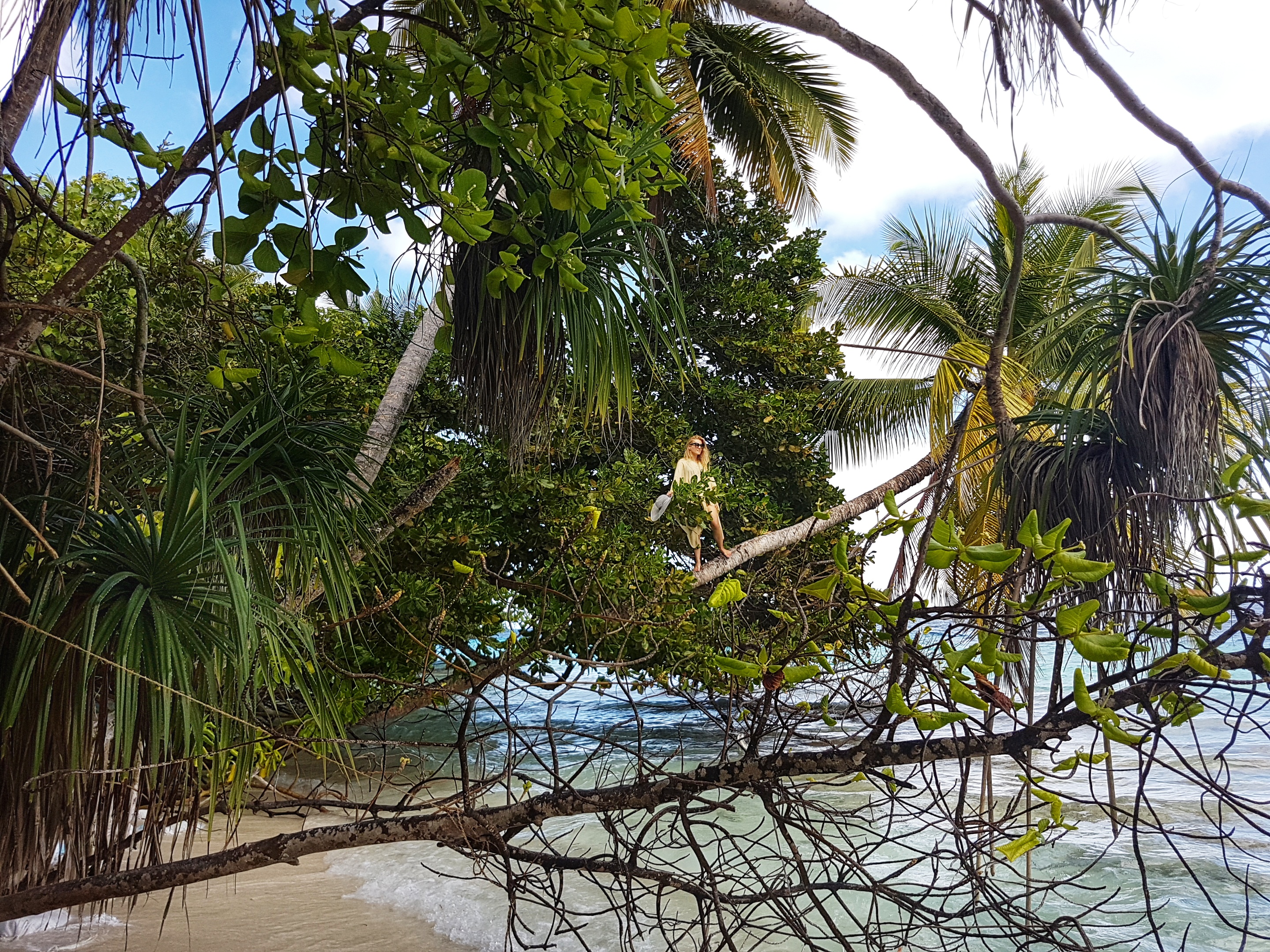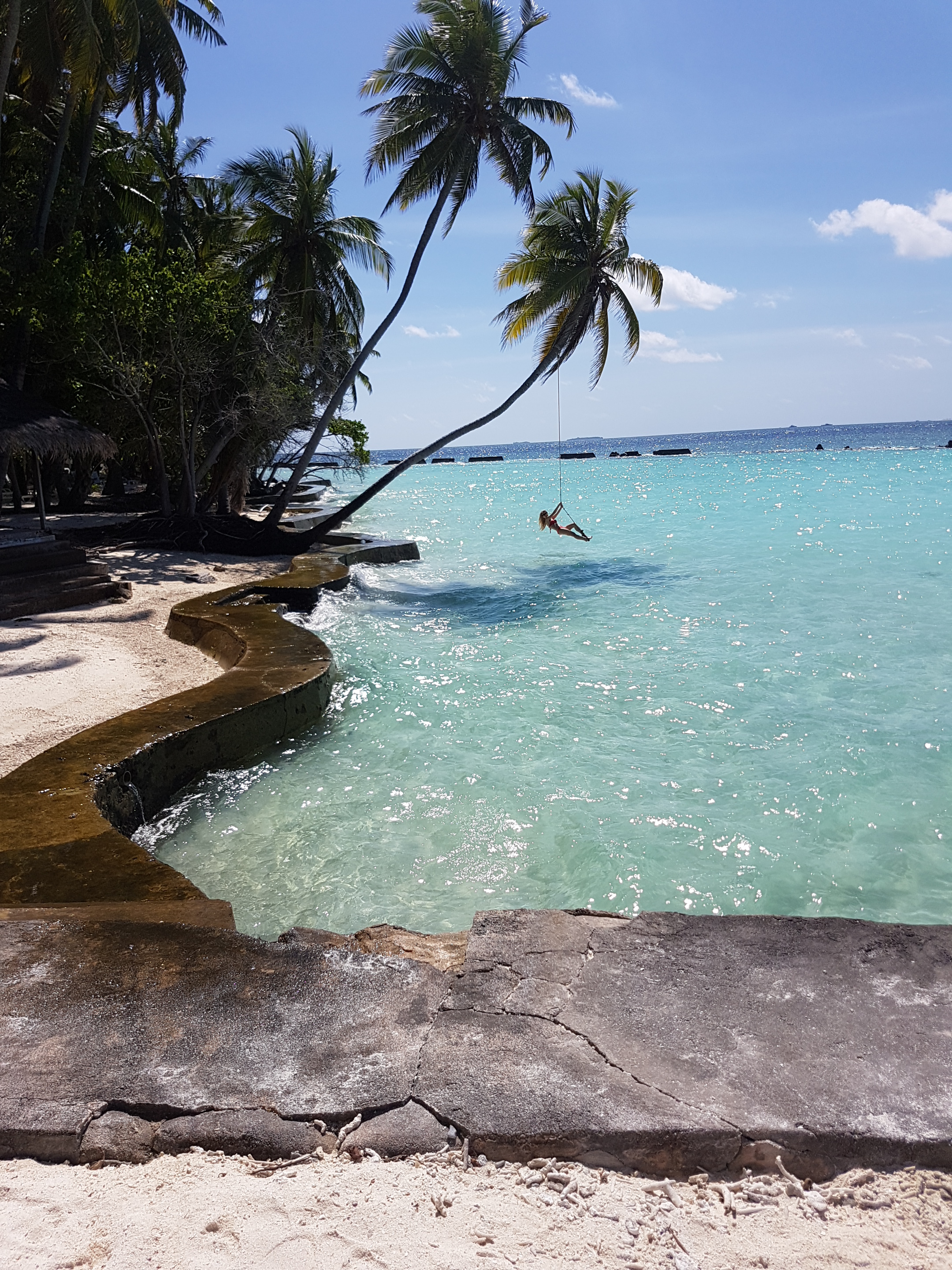 Aici se află și un palmier culcat unde îți poți face acele poze iconice din Maldive. Nu am încercat să-l escaladez, neavând acei ciorapi speciali, neceasari pentru a te urca într-un cocotier.