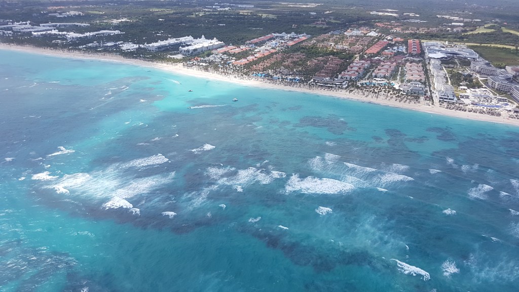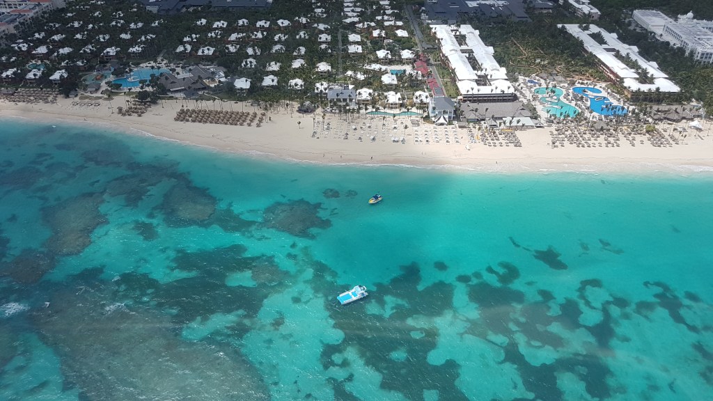 Playa Bavaro este mai frumoasă privită din apă pentru că de aici poți observa mai bine măreția palmierilor, întindere nesfârșită de nisip și zecile de nunațe de albastru ale oceanului. Privind aceste valuri ți se umple sufletul de energie și veselie. Sunt imagini care îți rămân pentru totdeauna în suflet și îți aduc fericire de fiecare data când le privești!