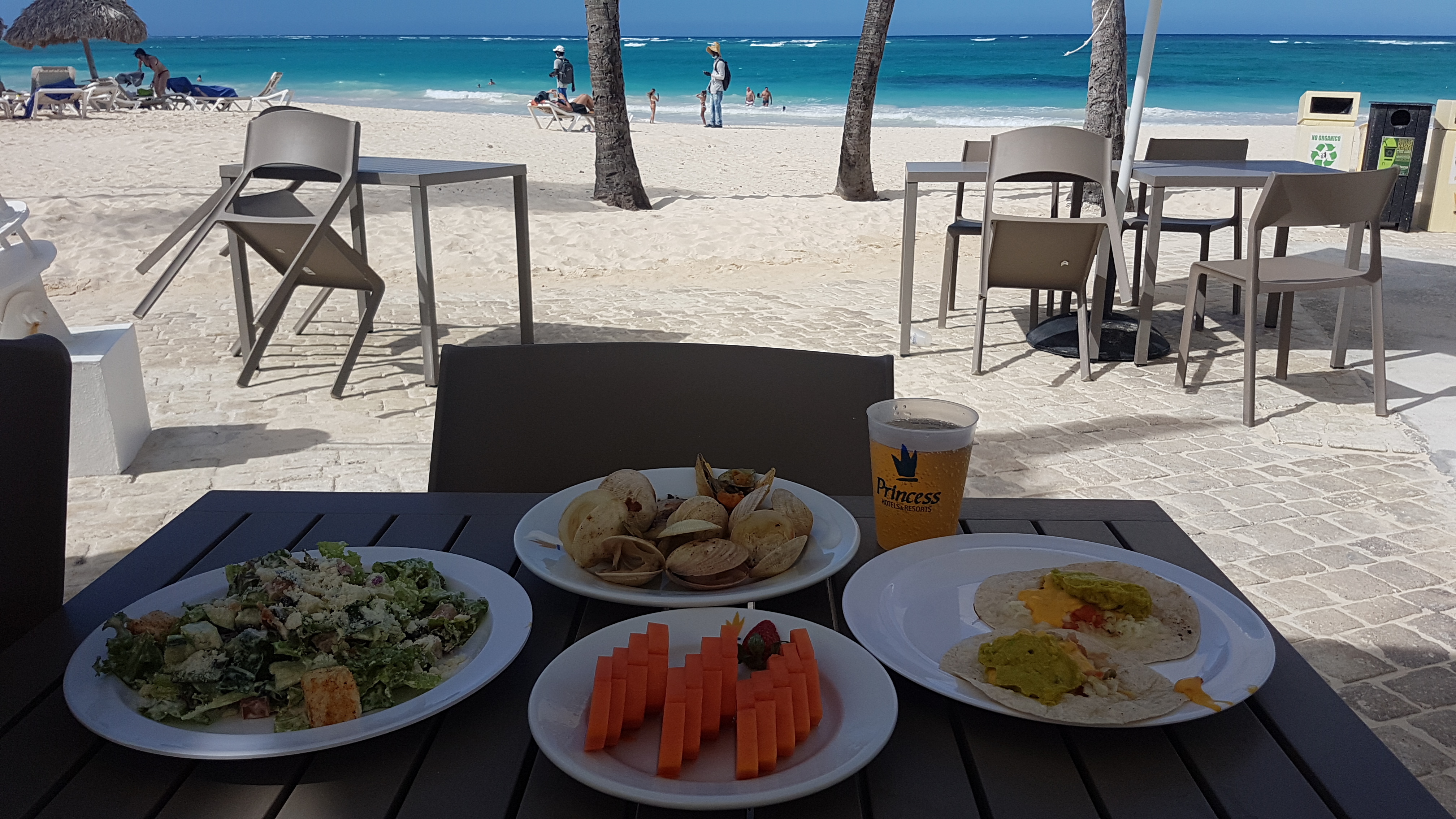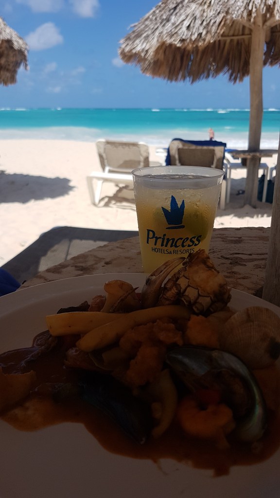 Eu am stat la Grand Bavaro Princess și este hotelul visurilor mele. Întotdeauna mi-am dorit să stau toată ziua pe plajă și să ies din apă doar pentru a mânca o ciorbă/supă și apoi să mă întorc în mare. Iar la Grand Bavaro Princess acest lucru era posibil pentru că avea restaurantul fix pe plajă. Puteai să te bucuri de micul – dejun, cină sau prânz în timp de admirai oceanul turcoaz, plaja, palmierii și sunetul valurilor. Ce poate fi mai frumos de atât?