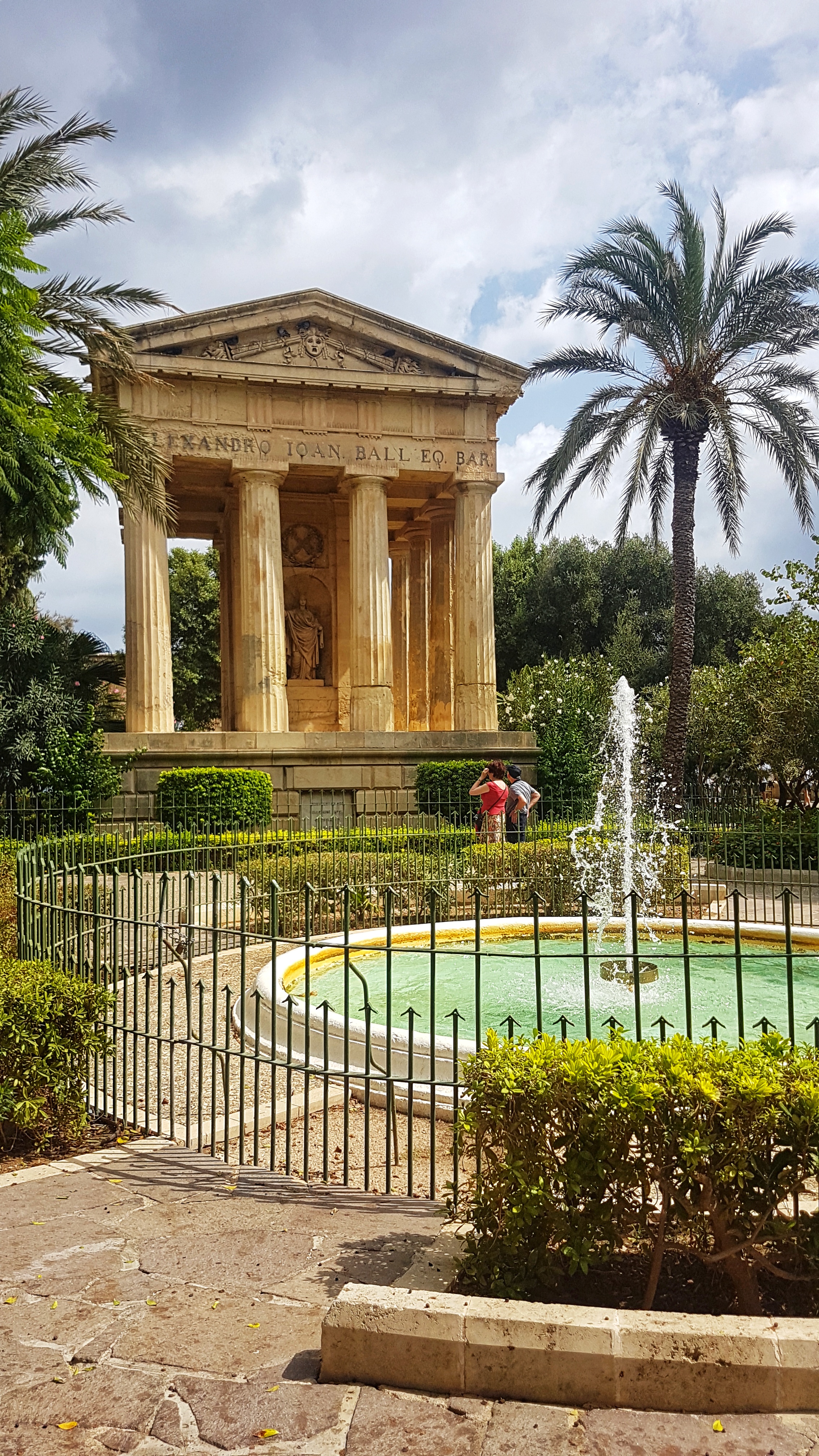 În grădinile Inferioare Barakka se remarcă un templu neoclasic construit în anul 1810 în memoria amiralului britanic Sir Alexander Ball.  Când priviți spre Marele Port, puteți vedea și Clopotul Siege ridicat în memoria victimelelor celui de-al Doilea Război Mondial.