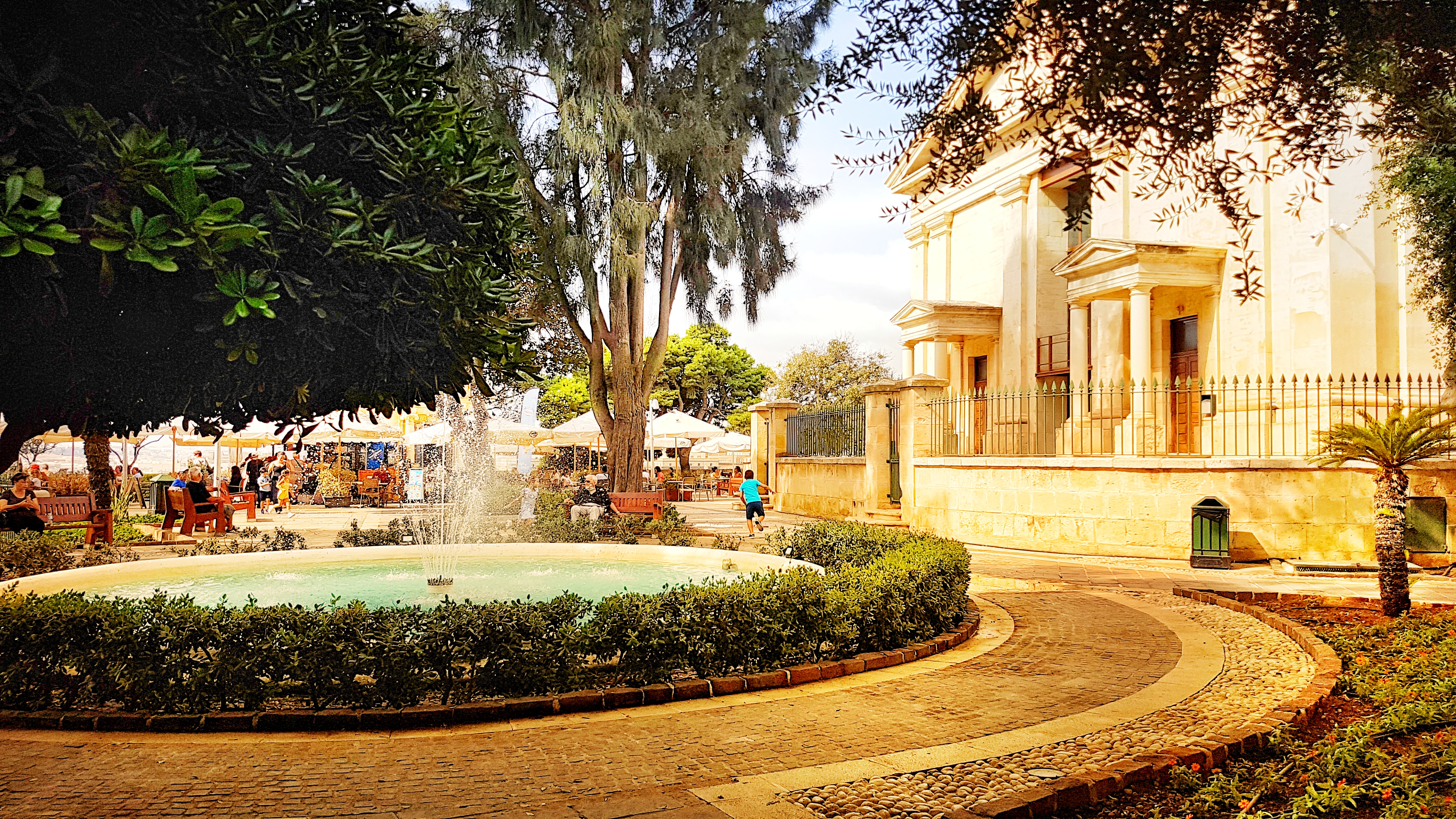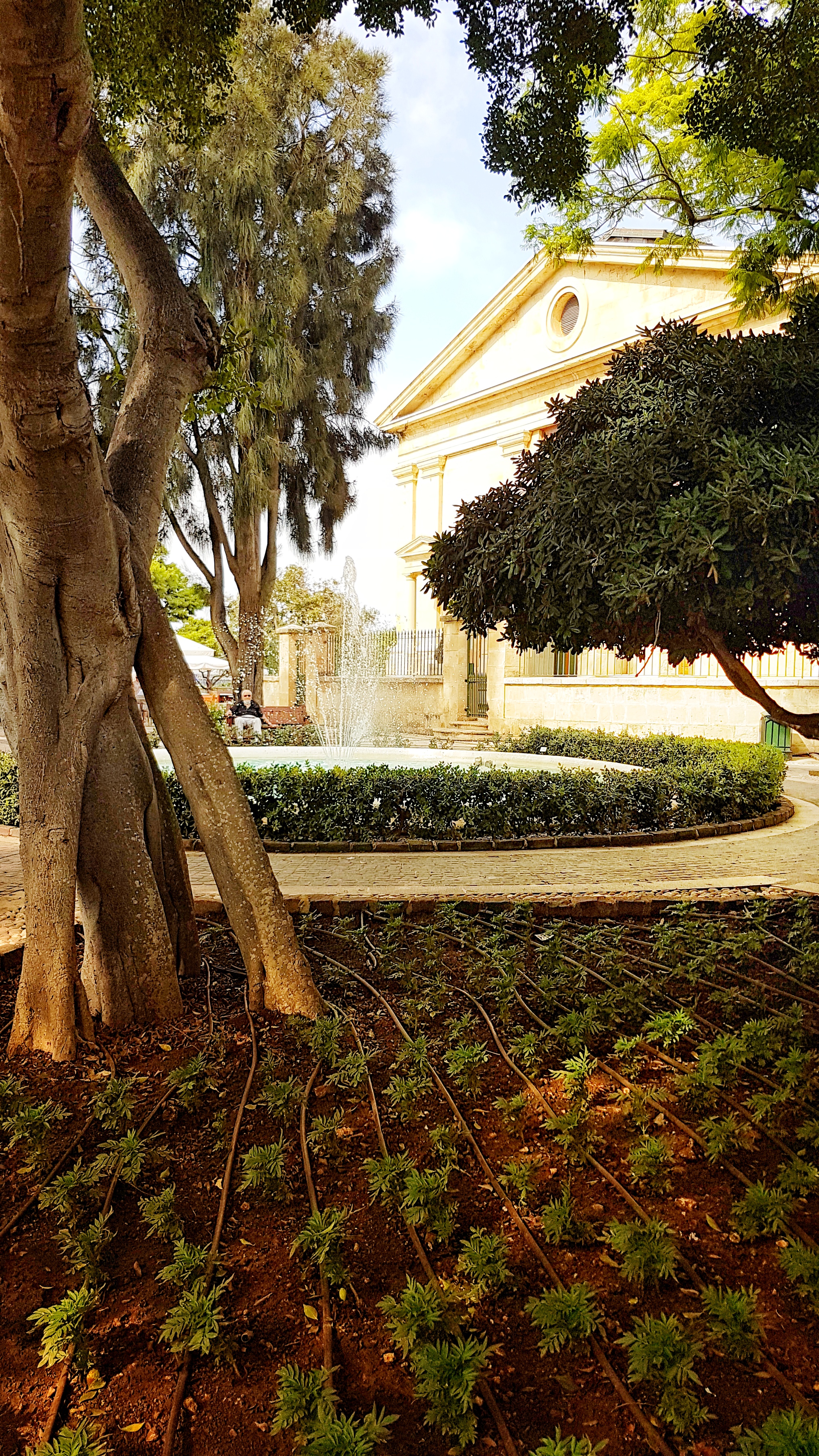 În drumul spre grădini observați: Curtea de Justiție, Biblioteca Națională a Maltei, Palatul Marilor Maeștri.